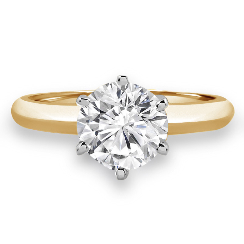 Youll get some major brownie points when you take a knee and present this 6 prong engagement ring. This cant-take-my-eyes-off-of-it diamond ring knows how to make the love of your life feel incredibly spoiled thanks to its ample shine and trendsetter design.