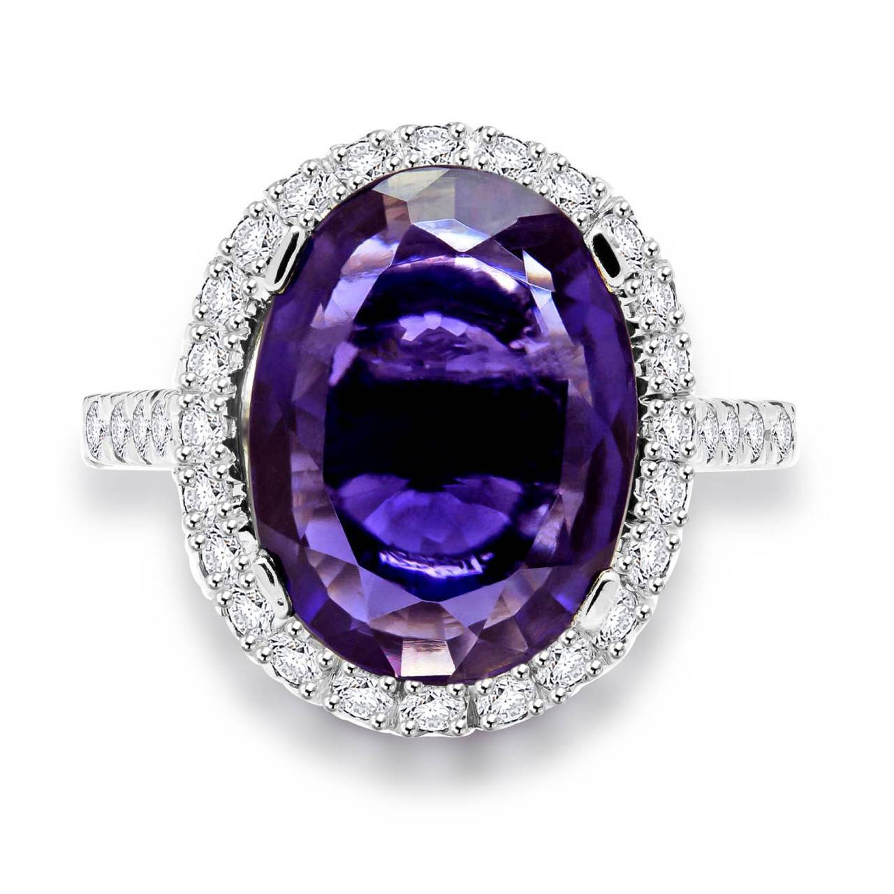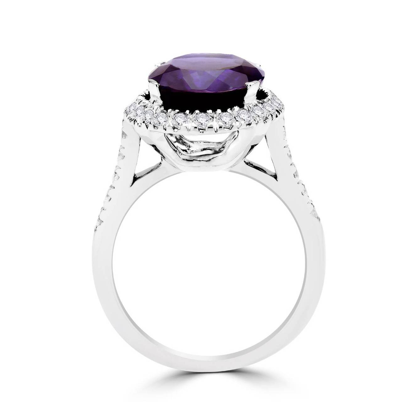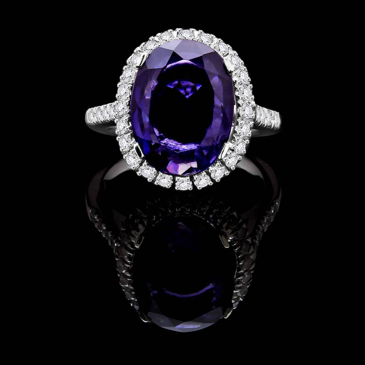 An Iolite gemstone ring this fabulous is simply too good to pass up! Watch it glimmer as the diamond accenting stones envelope the stunning oval cut purple iolite.