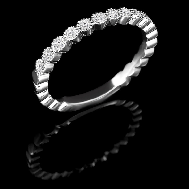 Your big day will be the stuff of legends when you slip this bezel-set wedding ring on your new spouses finger. The pinch-me-so-I-know-theyre-real diamonds will knock your partners socks off while you share your heart-felt vows with them.
