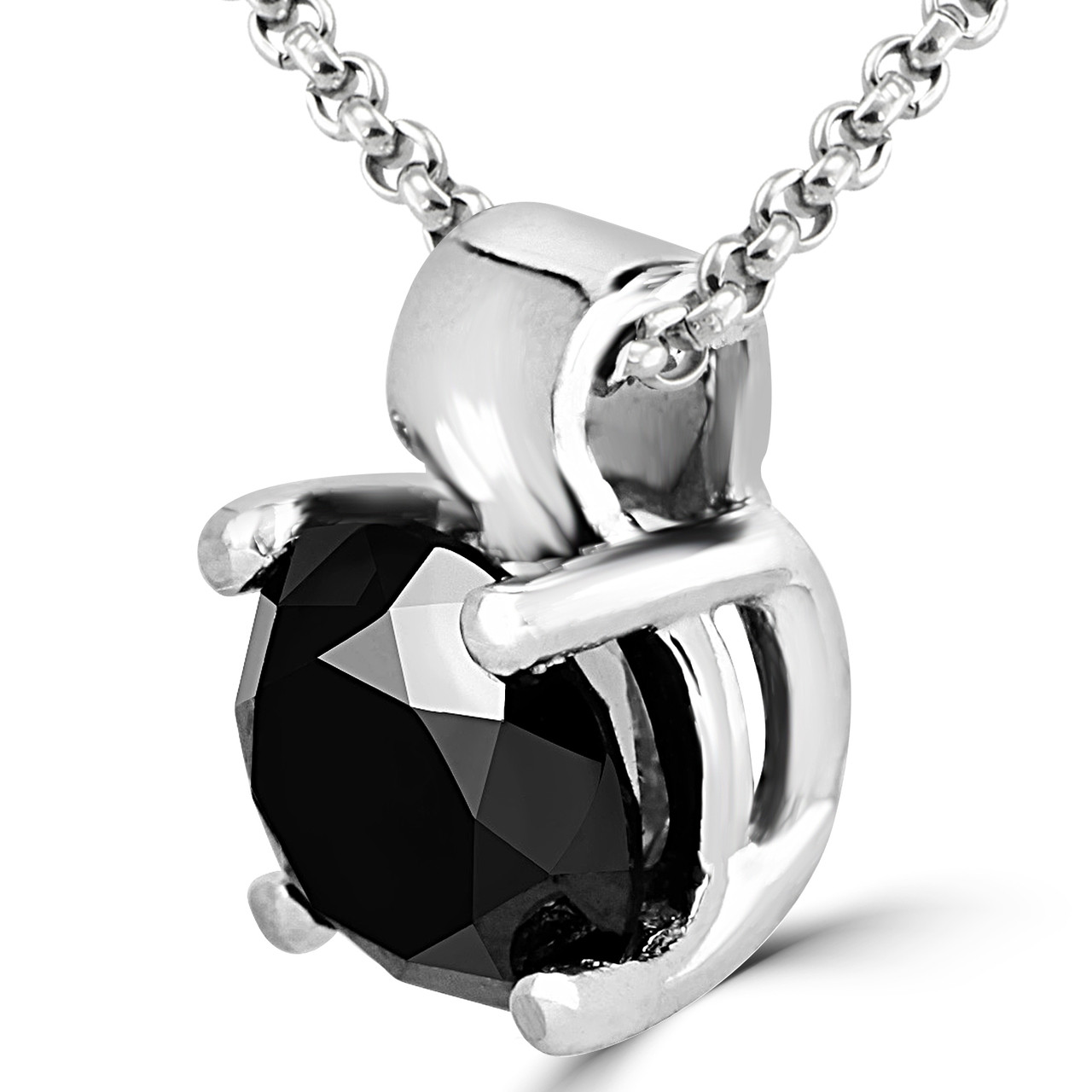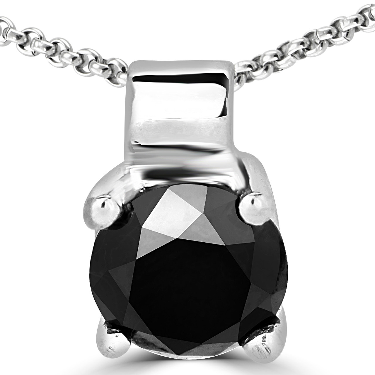 Round Cut Black Diamond Solitaire 4-Prong Pendant Necklace with Chain in White Gold - #R730-W-BLK