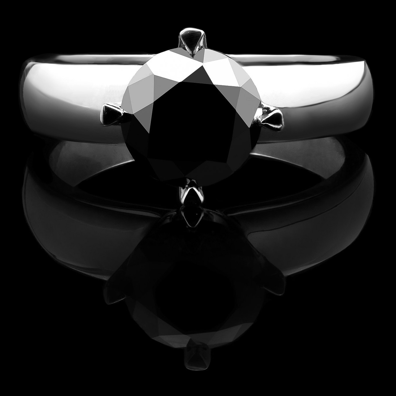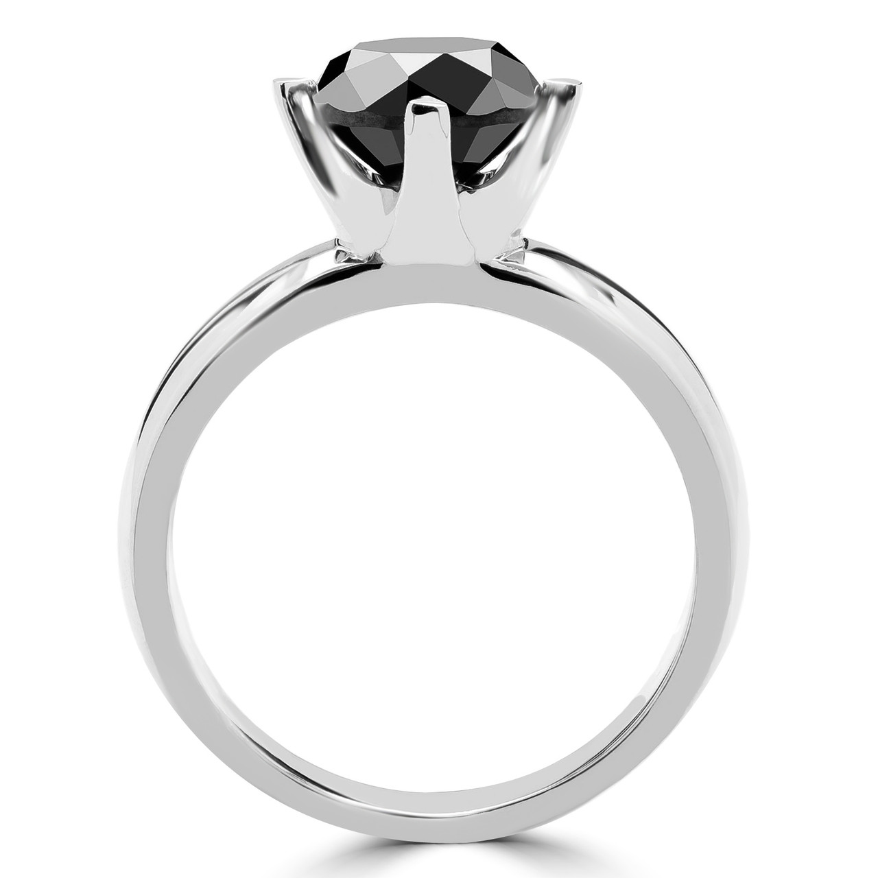 Round Cut Black Diamond Solitaire 4-Prong Engagement Ring in White Gold - #HR6948-W-BLK