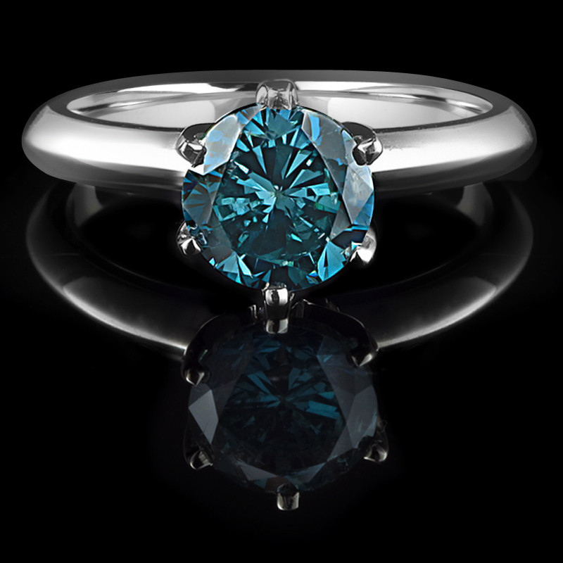 This blue diamond ring will give you top marks when it comes to romancing your special someone. The vibrant blue diamond goes out of its way to draw in attention while looking pretty cozy with your choice of stylish band.