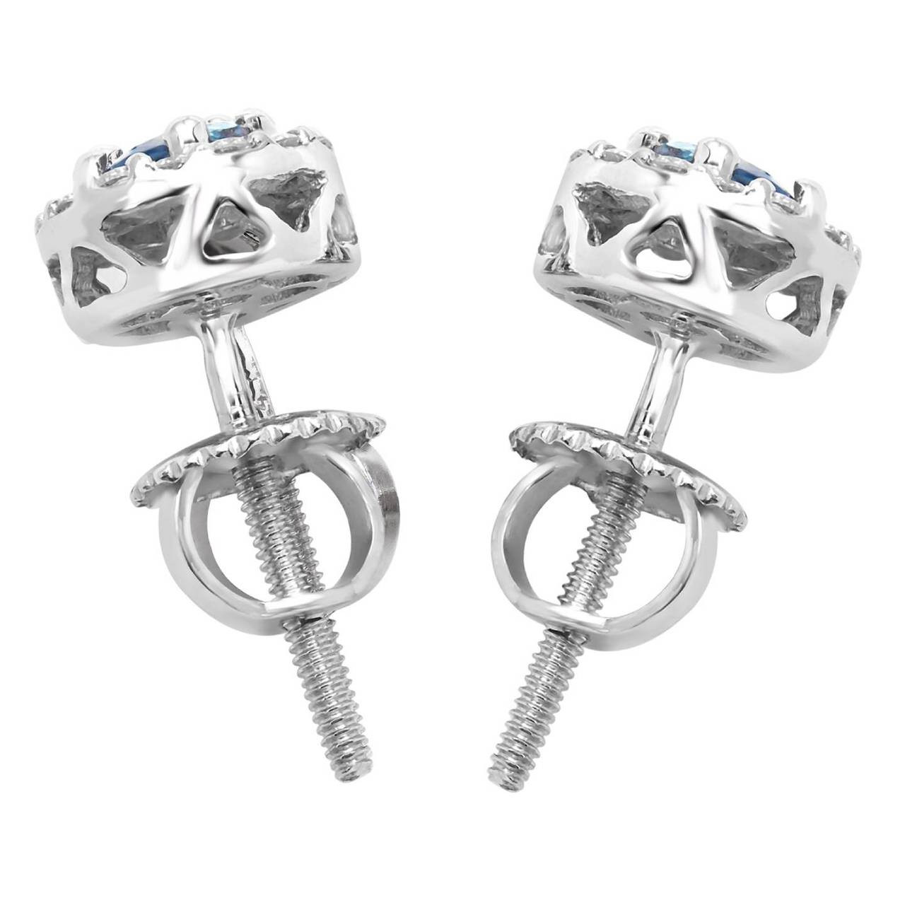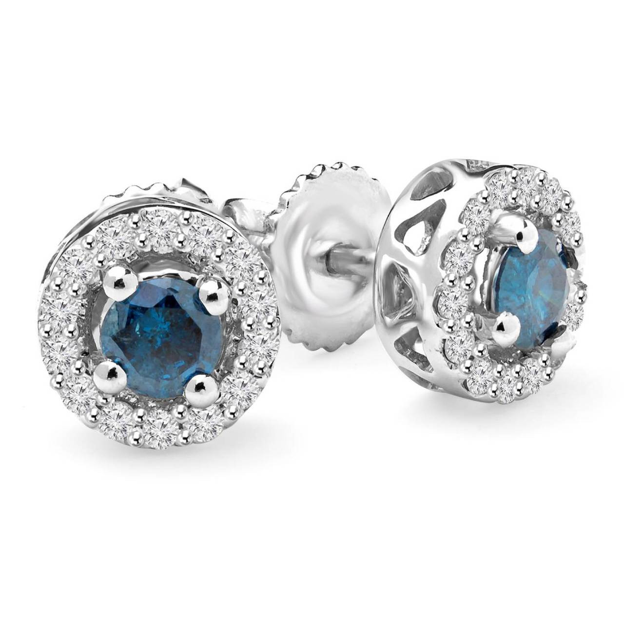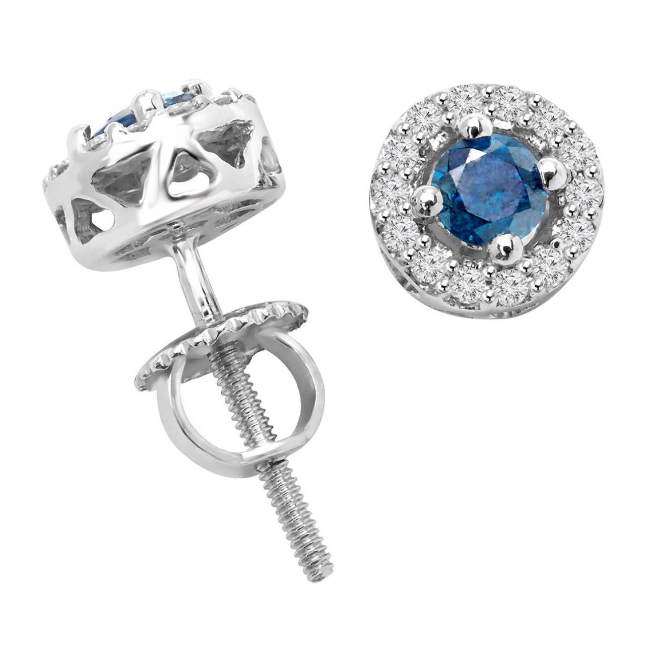 There will be no missing these blue diamond stud earrings when you wear them to the biggest parties around. With an over-the-moon blue diamond to capture the hearts of those you meet and a halo of weak-in-the-knees diamonds, youre sure to make a lasting impression.