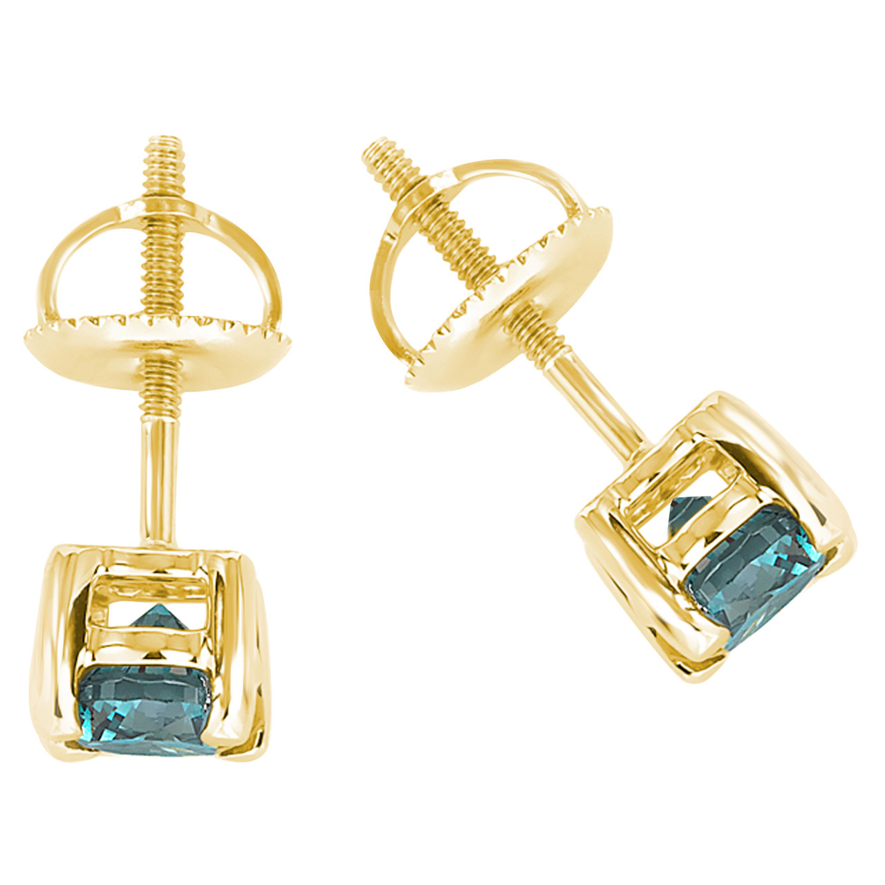 Offer your stunning fashion sense to the world when you show off these blue stud earrings. With the sparkle from the blue diamonds and the classic style of the studs, youre sure to earn several compliments on your second to none look.