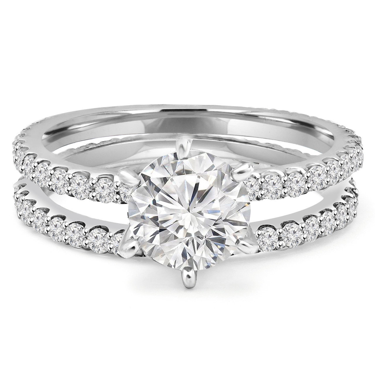 Your partner will fall head over heels for you all over again when you surprise them with this bridal set. Designed to look stylish and irresistible, this stunning engagement ring and wedding band combo will bring excitement and beauty to everyday life.