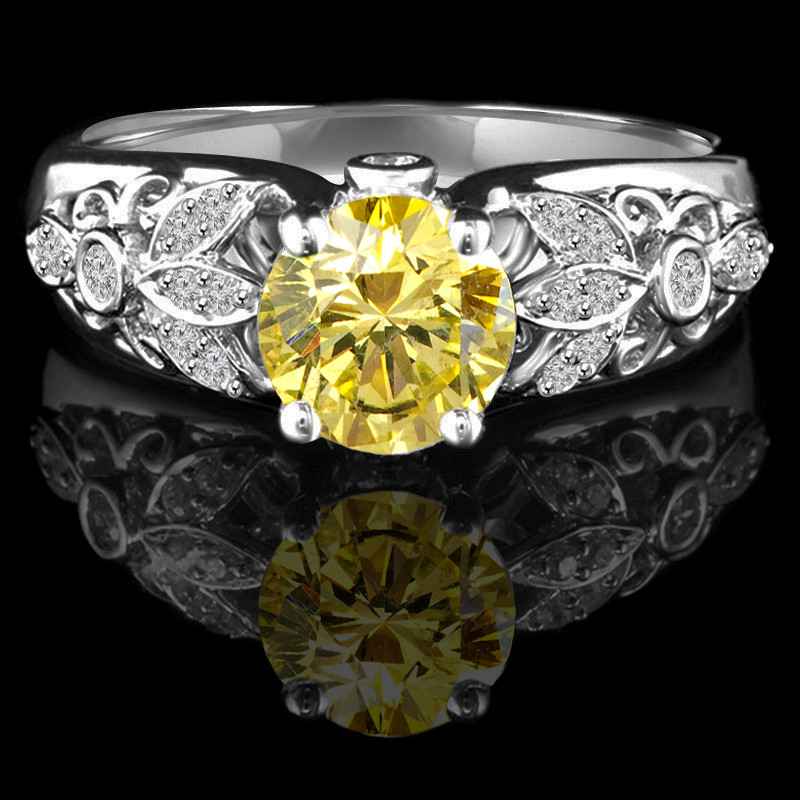 Impress your special someone with a canary yellow diamond that is sure to sing the song of your love story. Boasting white diamond accents and a chic metal shank, this engagement ring is sure to be all that their friends can talk about.