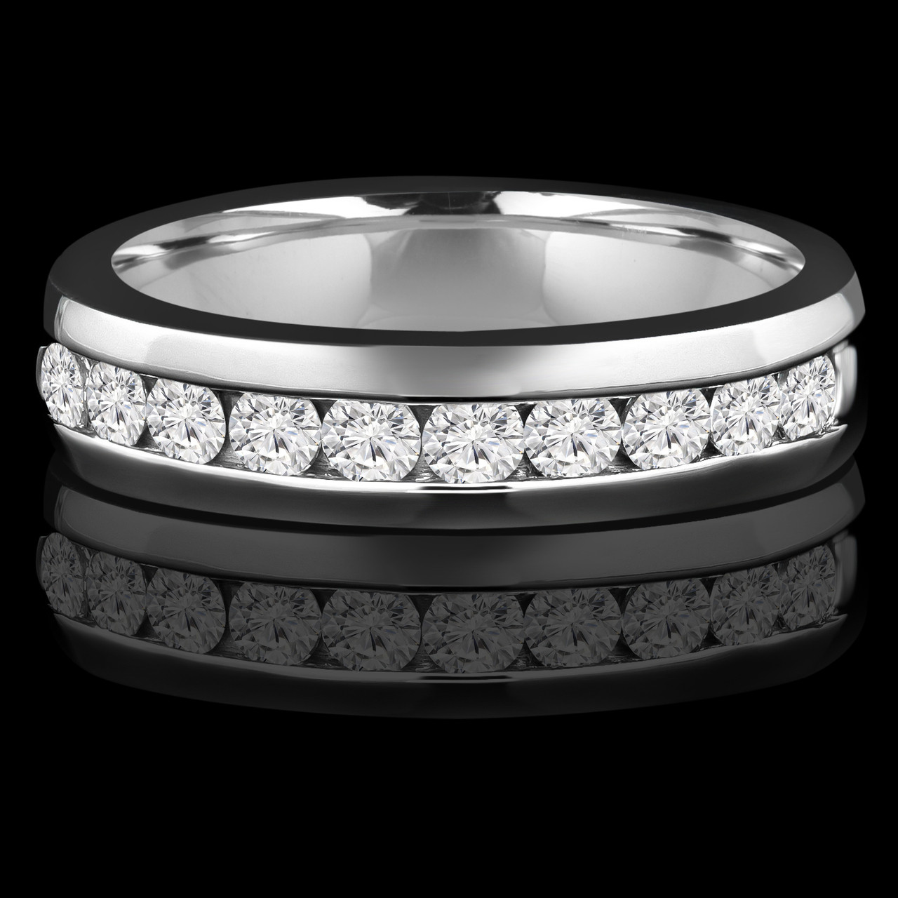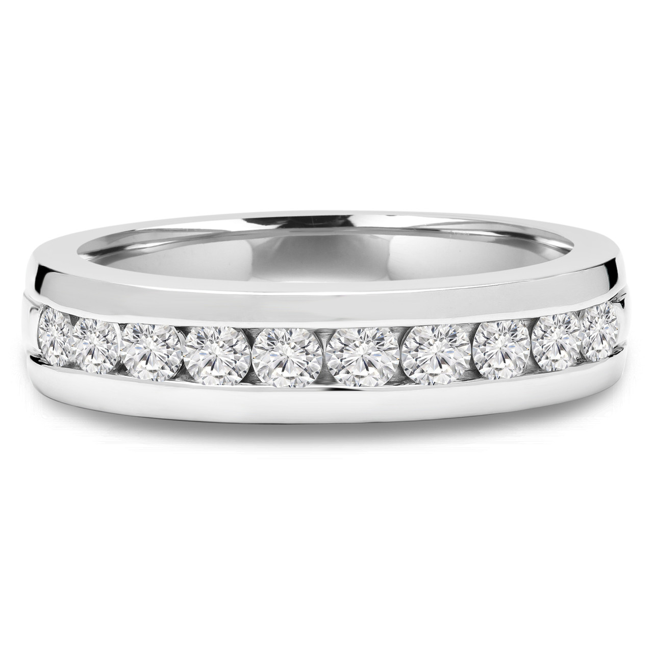 When you choose a piece as stylish as this channel set wedding band youll know your special someone will never grow tired of its charm. Boasting a shiny golden band and channel set diamond, this ring is certain to become the highlight of their wardrobe.