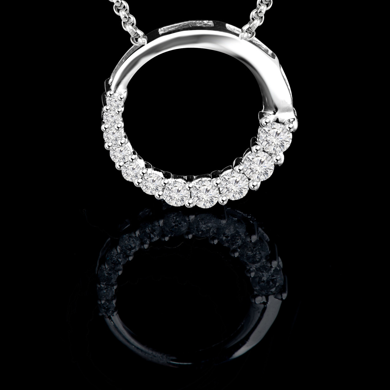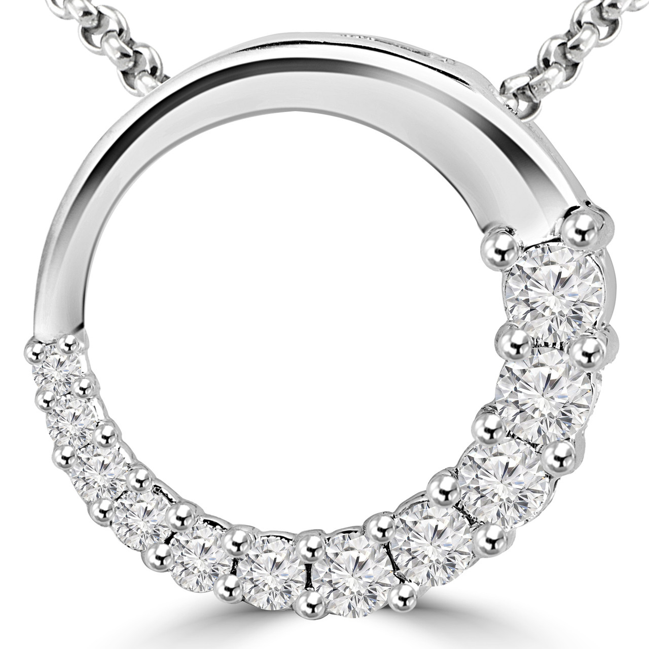 Dressing to impress will only take seconds when you have this circle pendant in your collection! This journey circle necklace shows off double-take-worthy round-cut diamonds and a stylish box chain that pairs with any style you choose to wear.