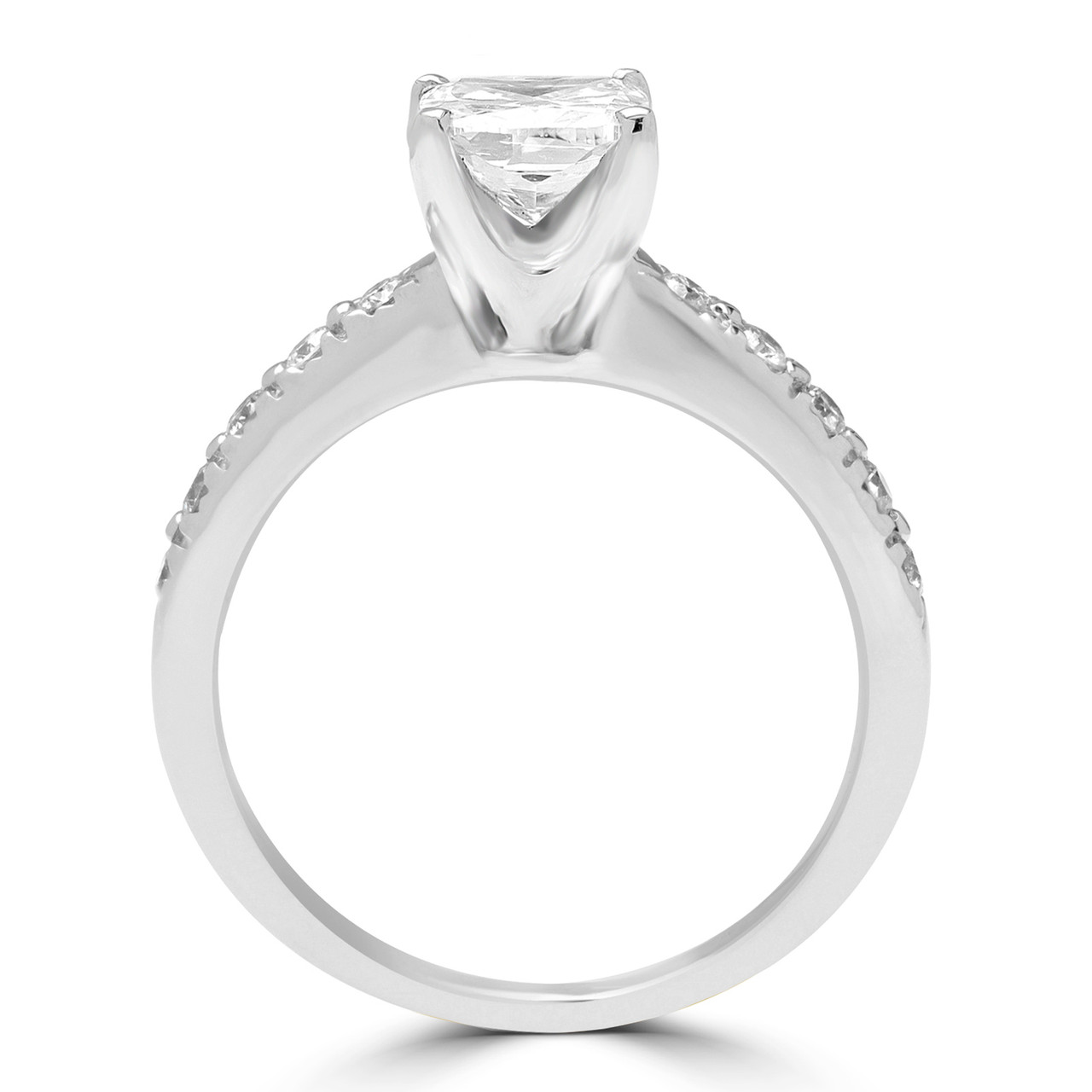 Cushion Cut Diamond Multi-Stone 4-Prong Engagement Ring with Round Diamond Accents in White Gold - #LOCAL-NOVO-MD-P-W