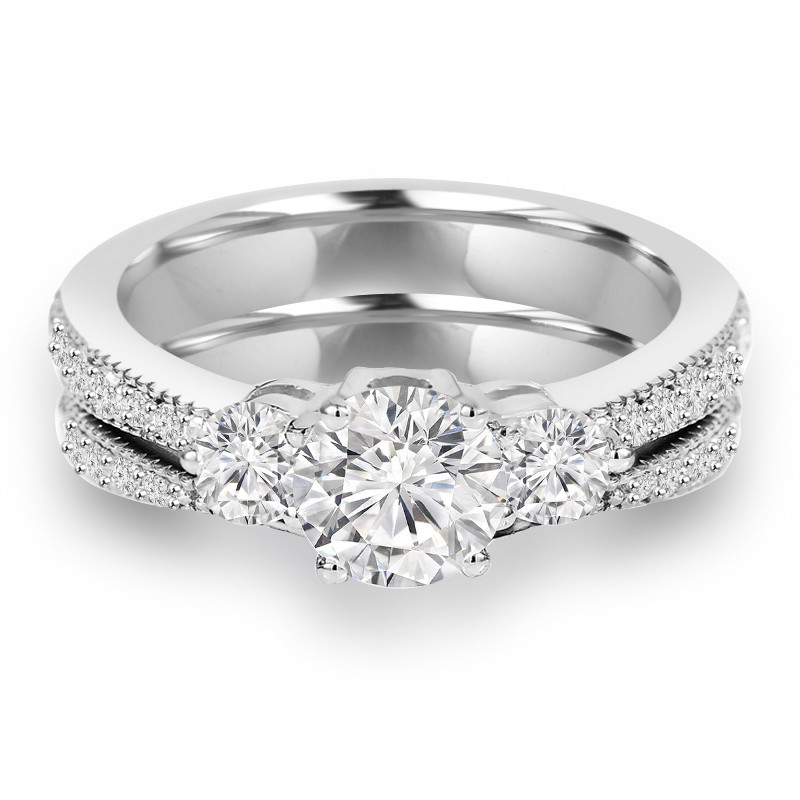 This diamond bridal set is all the encouragement youre going to need to ask your loved one the big question thats been on your mind. Boasting stunning diamonds and a matching design, this ring is sure to leave your partner excited to begin a new chapter in your lives together.