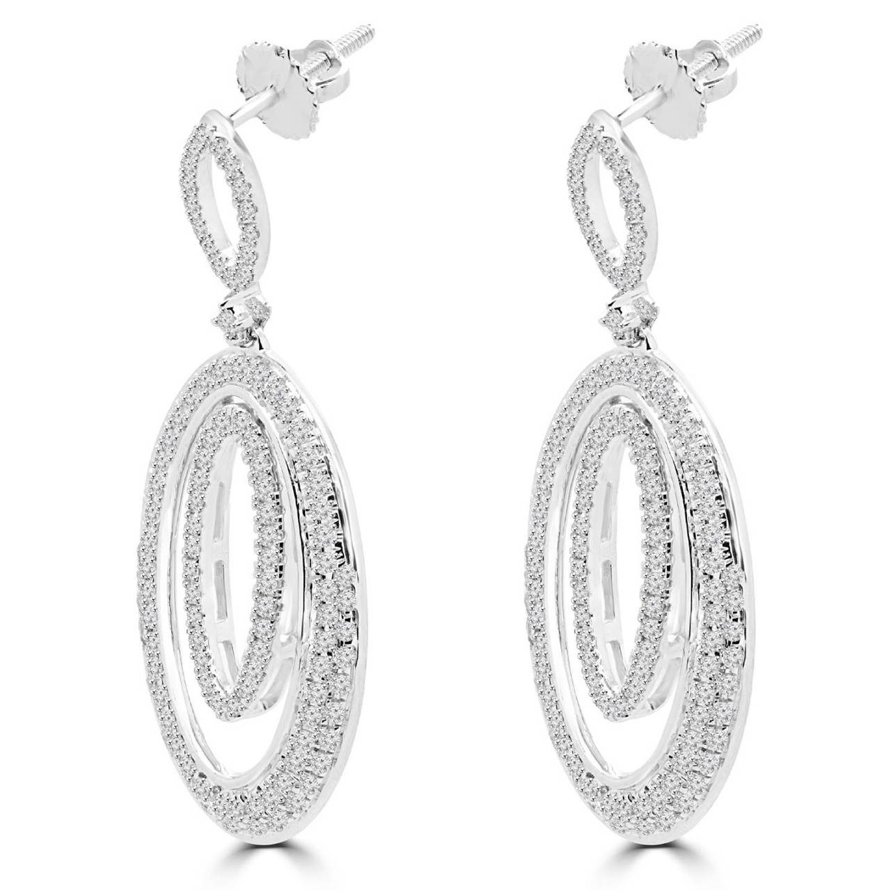 Forget spending hours debating over how youll accessorize! With these diamond dangle earrings, youll know just what to wear every time you need to keep it up-scale. With three hoops of cluster diamonds to show off, youll know youll sparkle brighter than anyone else.