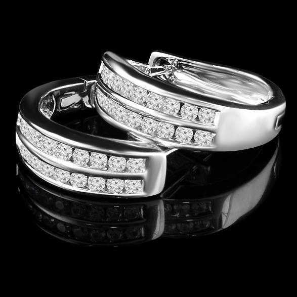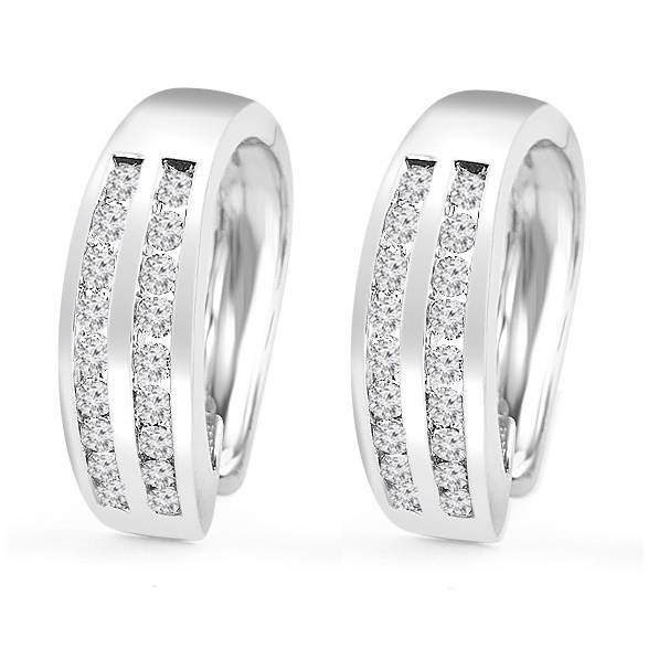 Round Cut Diamond Multi-Stone 2-Row Huggie Hoop Channel-Set Earrings in White Gold - #HE2046-W