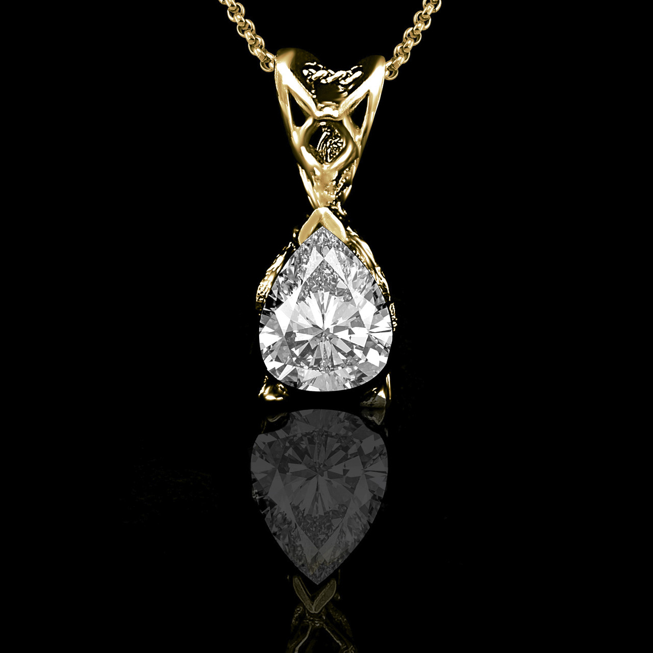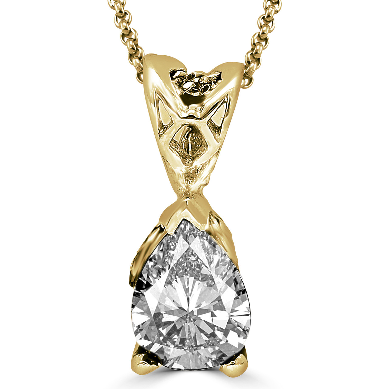 Pear Cut Diamond Solitaire 3-Prong Pendant Necklace with Chain in Yellow Gold - #PPF-Y