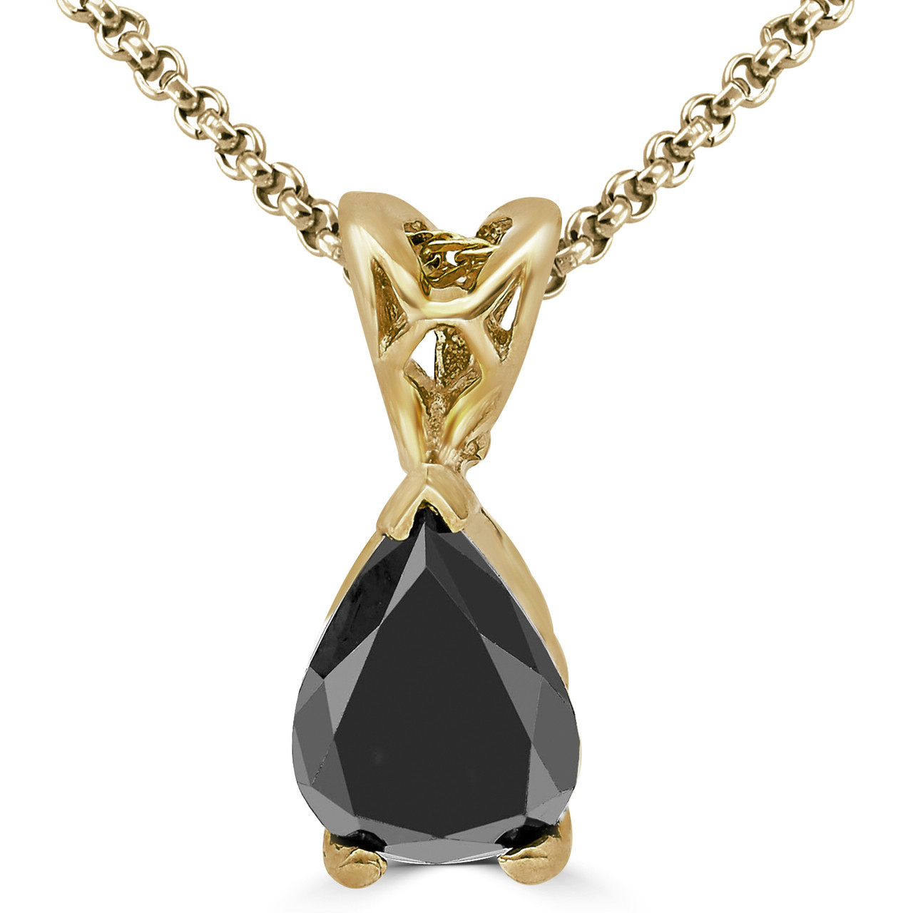 A little intrigue will go a long way when you pair this diamond solitaire necklace with your cocktail attire. A mesmerizing pear-cut black diamond shows off your fashion savvy personality. This necklace is sure to demand compliments every time its worn.