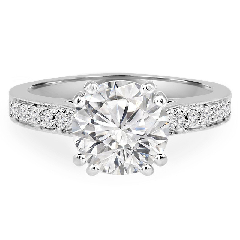 You cant go wrong when it comes to a vintage style as extraordinary as this double-prong engagement ring. Boasting a round-cut diamond centre stone that sits on a cathedral-setting, this double-take-worthy engagement ring will make your partner feel adored.