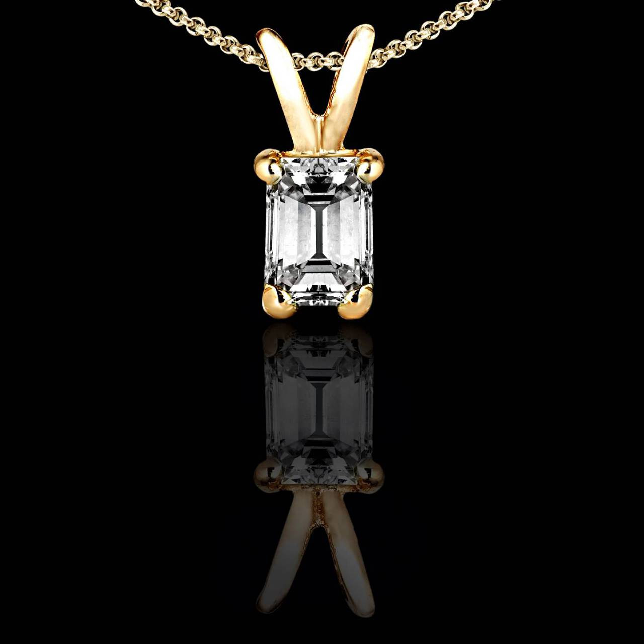 Take your style to an all new level when you show off this emerald diamond pendant necklace. Boasting a solitaire emerald-cut diamond on a sleek metal cast, this stunning necklace will give you the jaw-dropping look youve been dreaming of.