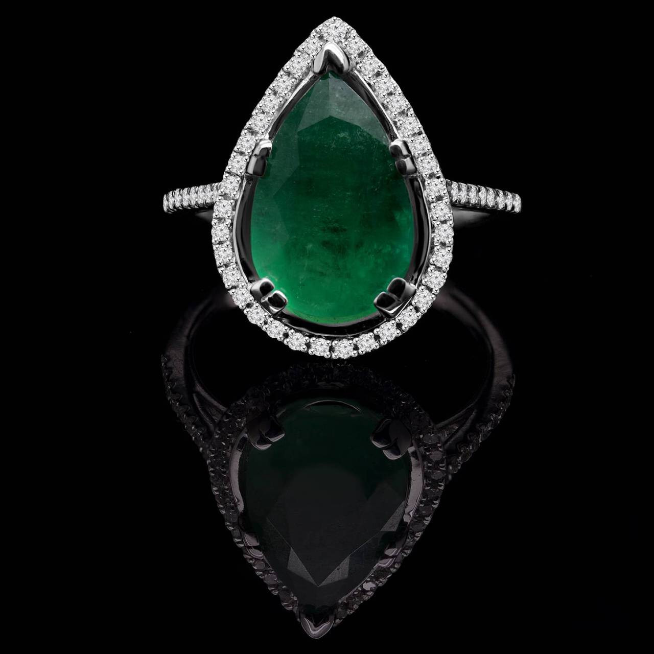 Who knew cocktail rings like this emerald gemstone ring could be so tantalizing? With its pear-cut shape, halo design and white diamond accents, you'll be the belle of any ball you attend.