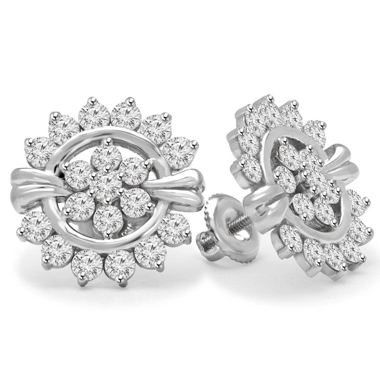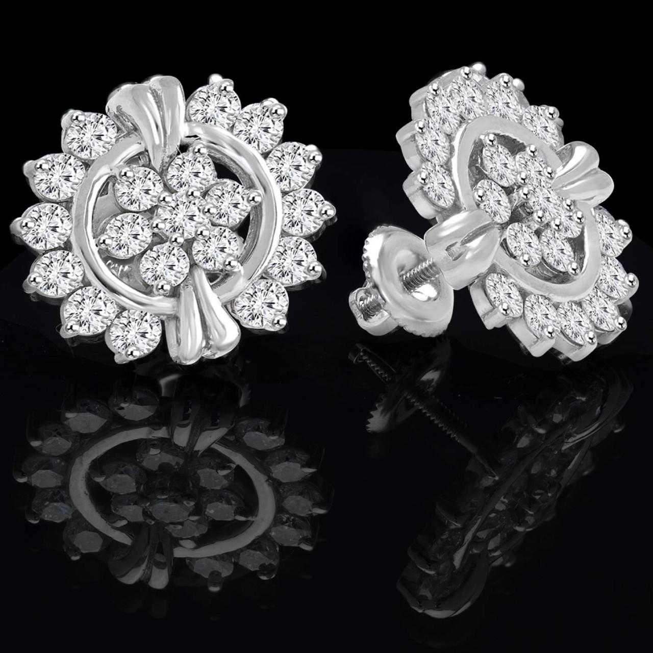 Bursting with beauty, these flower stud earrings will add a refreshing touch to your fabulous fashion sense. Theres no doubt that youll have a little extra pep in your step thanks to the dazzling diamonds youre flaunting.