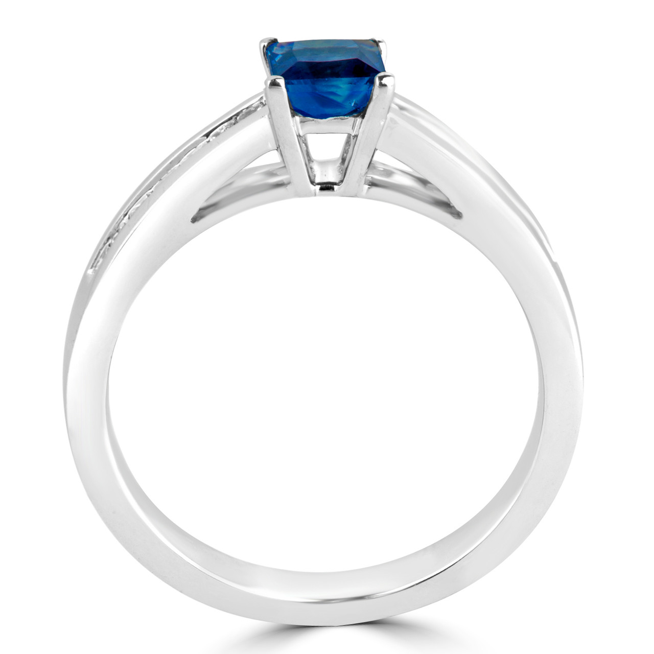Explore the love of your lifes smile when you slip this gemstone engagement ring on their finger. With the blue sapphire center stone and fabulous diamond accents, youre sure to see a sparkle in your partners eyes.