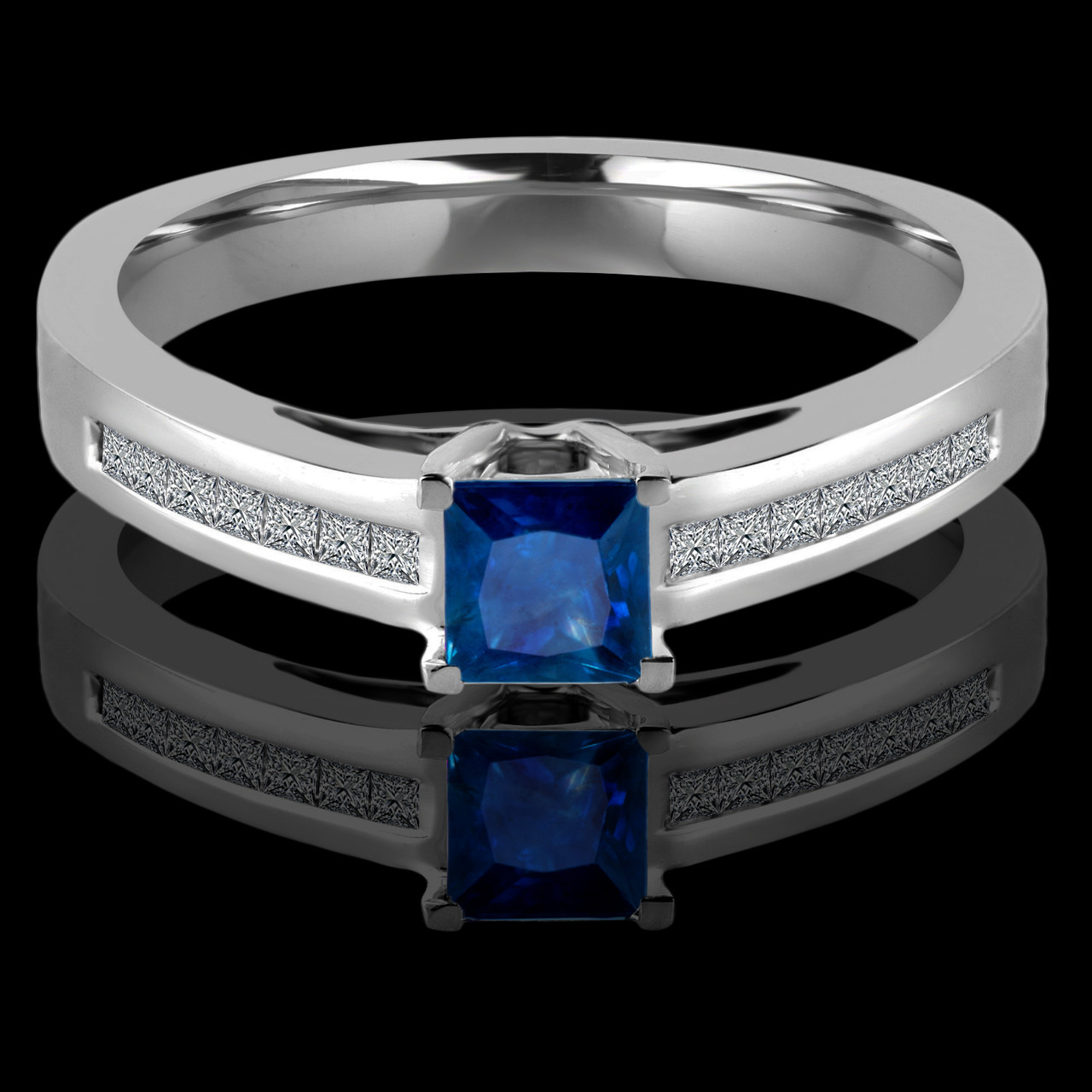 Princess Cut Blue Sapphire Gemstone Multi-Stone Engagement Ring with Princess Cut White Diamond Channel-Set Accents in White Gold - #HR4528-W-SA