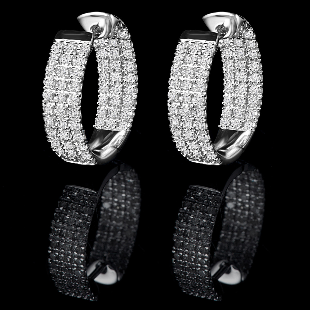 Round Cut Diamond Inside Outside Hoop Multi-Stone Three Row Pave-Set Earrings in White Gold - #EAOC3262