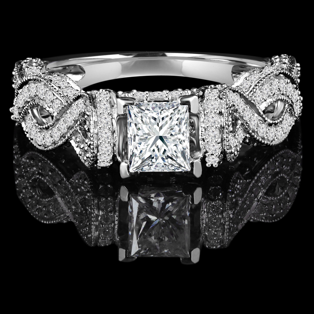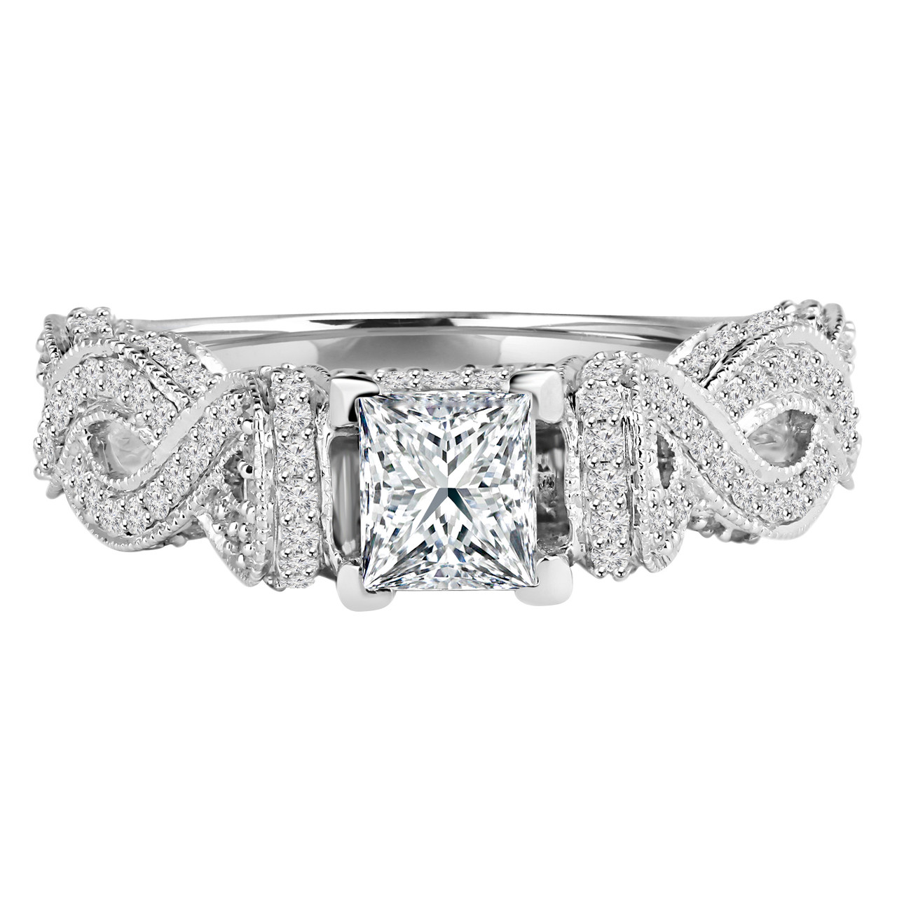 Show your partner that they mean the world to you when you propose with this infinity diamond engagement ring. Designed to make your one and only feel like royalty, this ring features your choice of metal shank and diamonds that will leave your partner speechless.