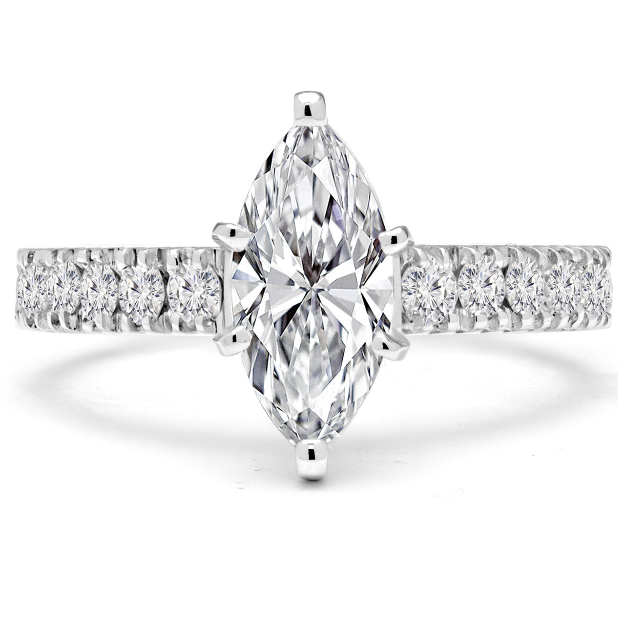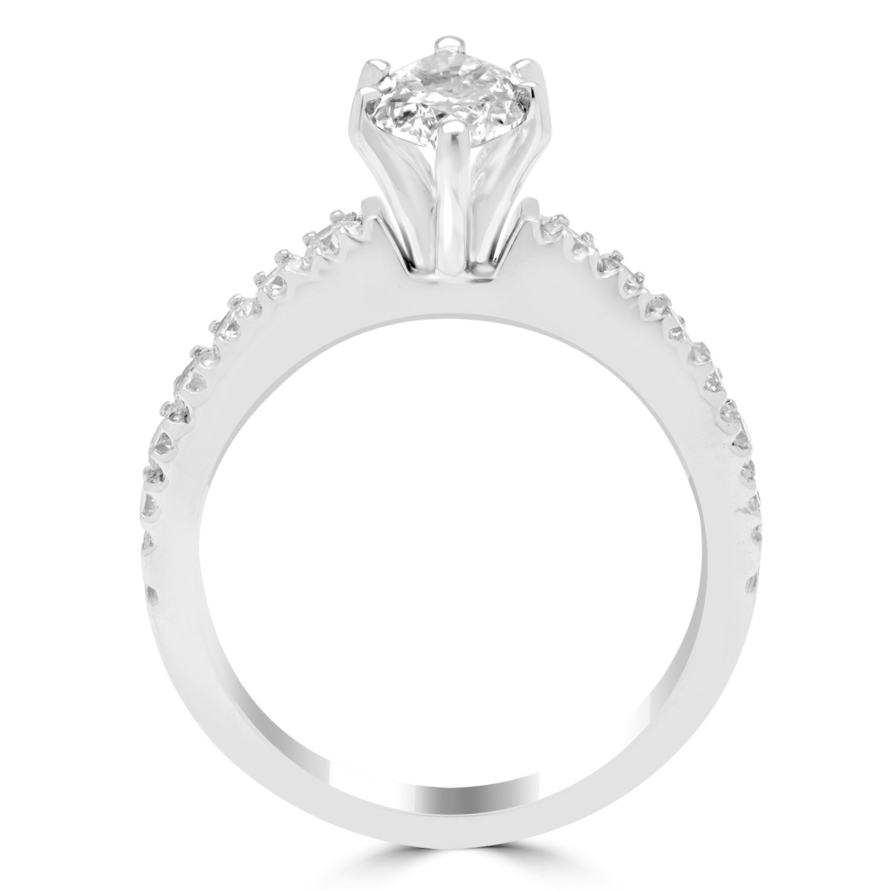 Declare your love in style when you take a knee and present a ring that shows off marquise diamonds! This stunning cut looks amazing with all styles and complements the jaw-dropping band that is covered in even more sparkling diamonds!