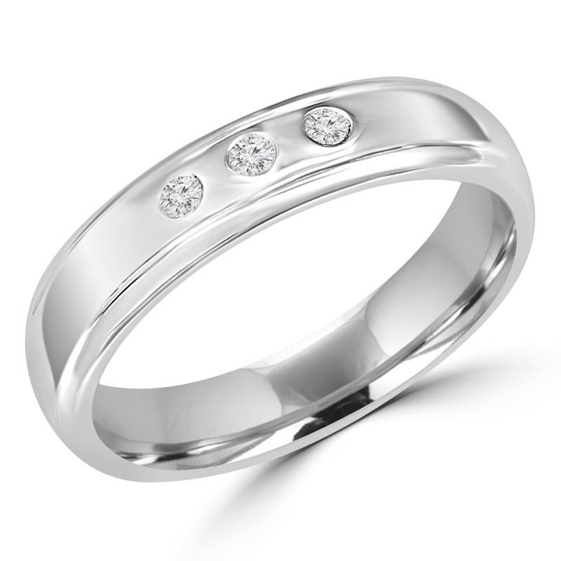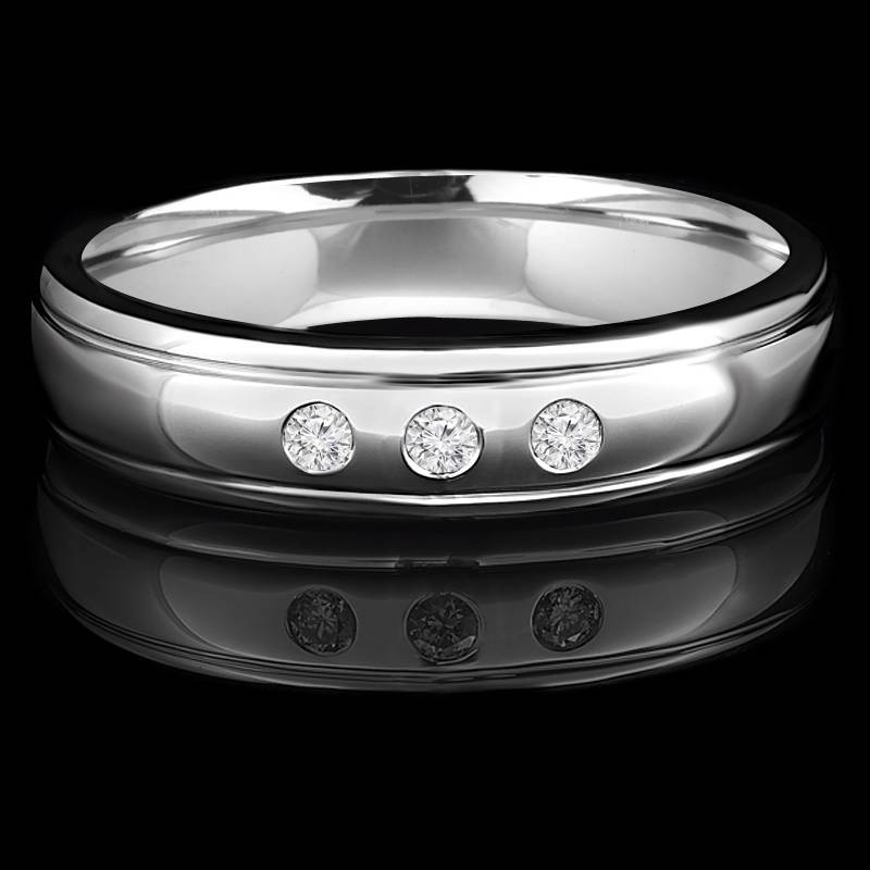 Give your special someone a little extra sparkle when you present one of these mens wedding rings. With three bezel-set diamonds and a sleek band, youll love customizing the final details to suit your partners unique fashion sense.
