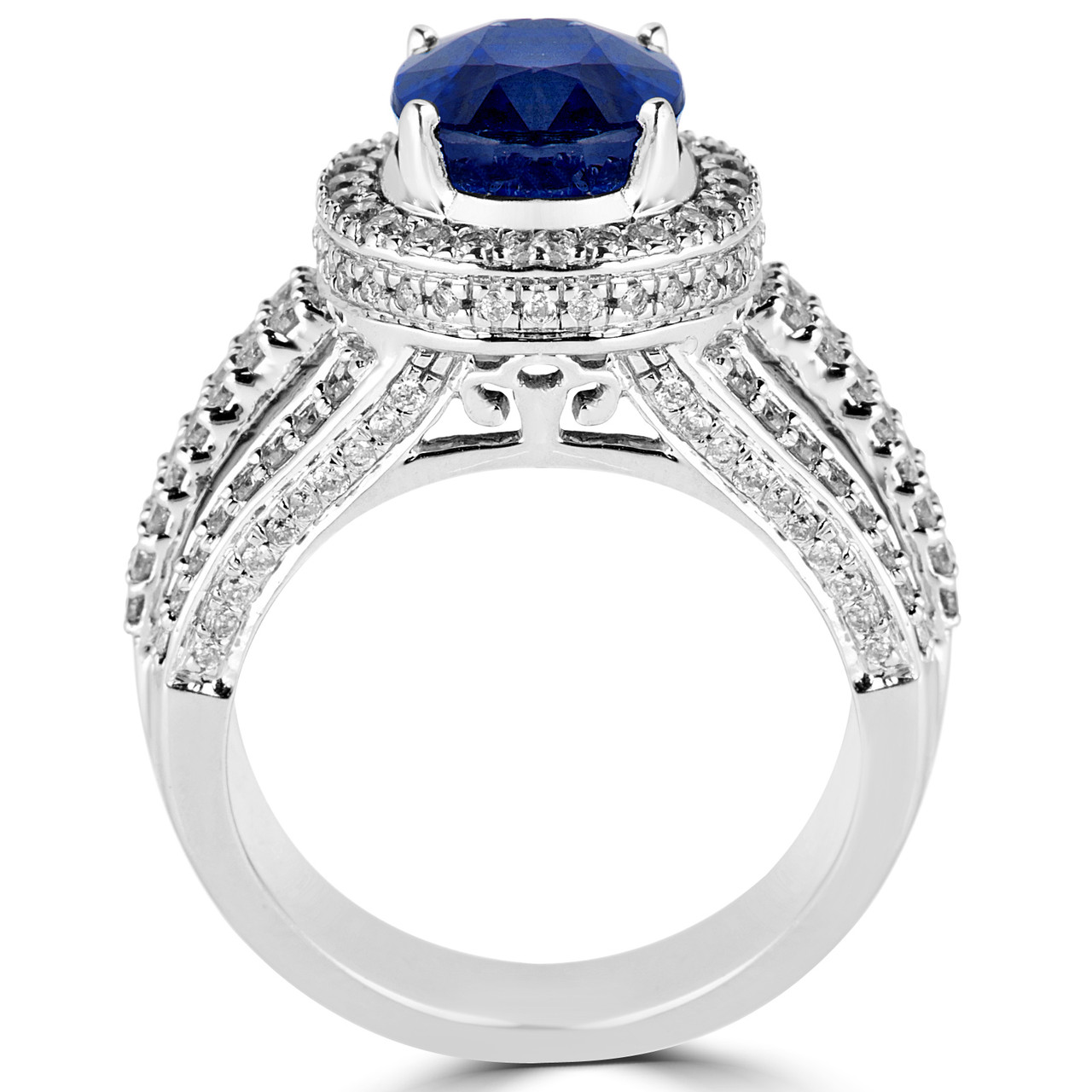 Propose in style when you choose this oval halo engagement ring to express how you feel. Youll be on the edge of your seat as you slip the mesmerizing sapphire and diamonds on to the love of your lifes finger. Theres no doubt, they will feel the sparkle of your love the moment the shine meets their eyes.