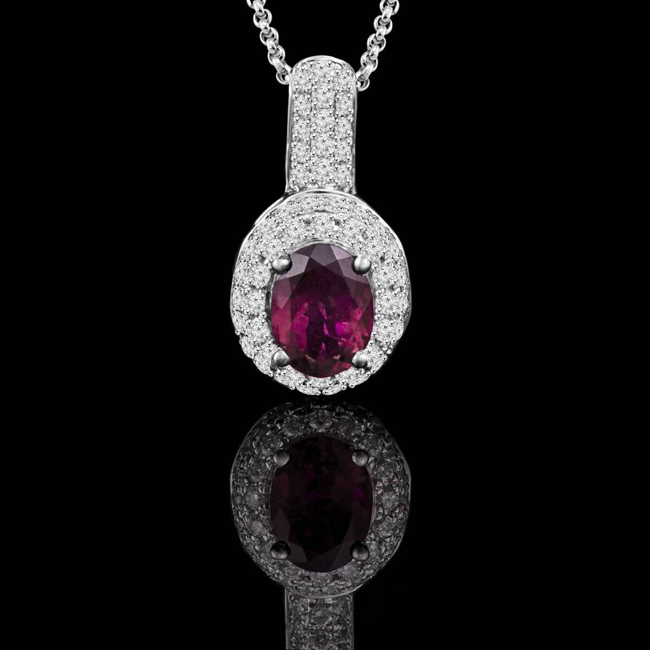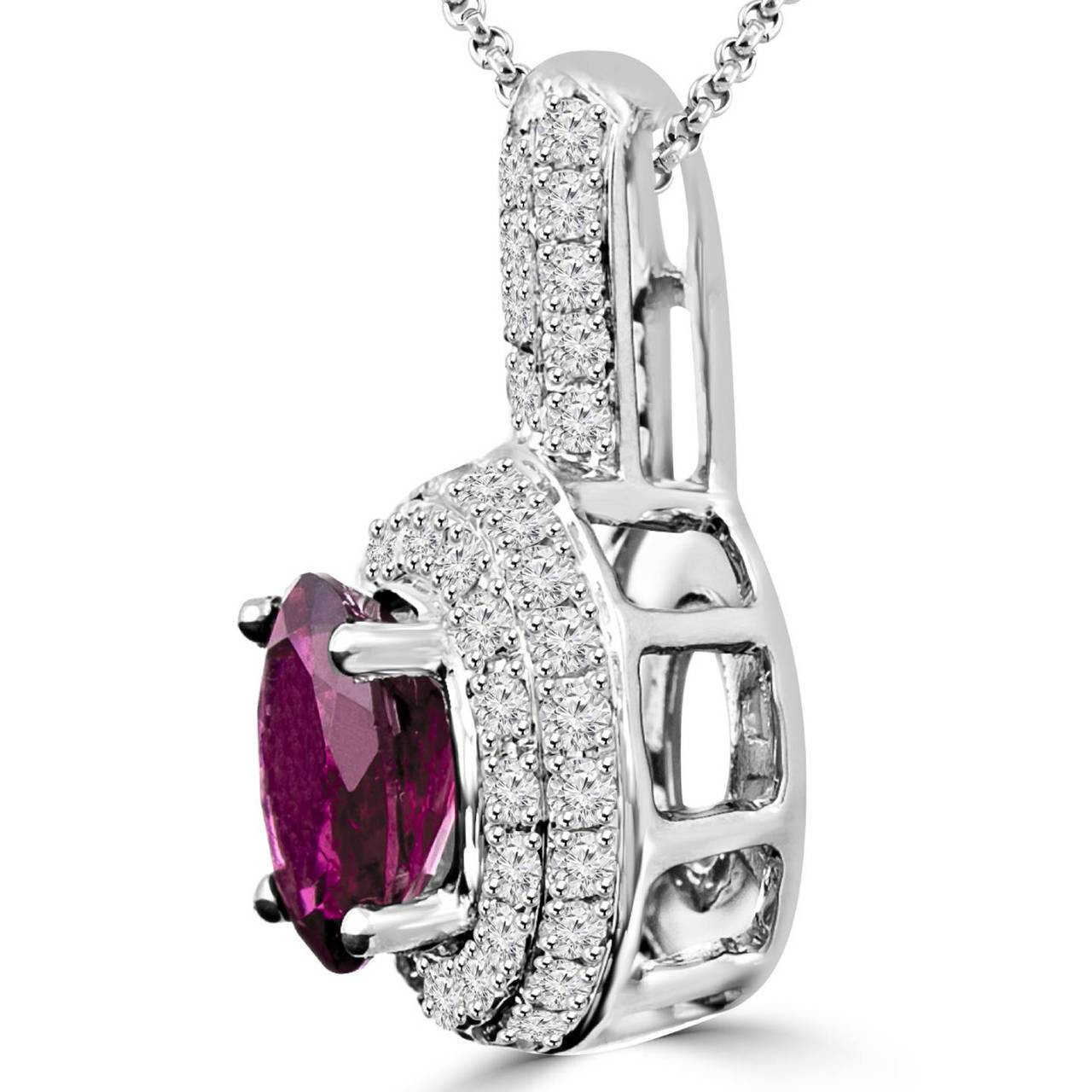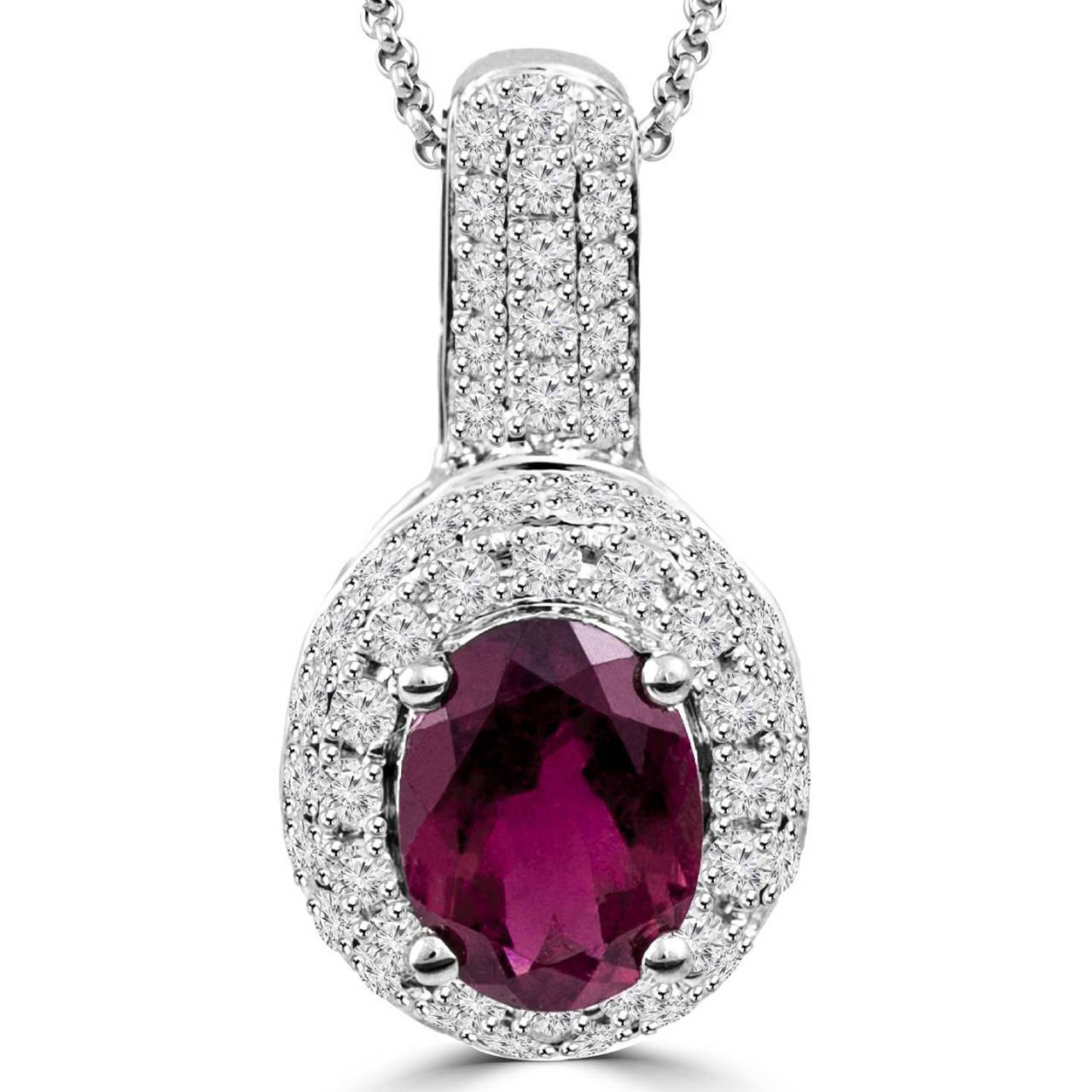 Oval Cut Pink Tourmaline Gemstone Multi-Stone Halo Pendant Necklace with Round Diamond Pave Accents in White Gold with Chain - #ESFQ111-OVAL-PINK-TOURMALINE-W