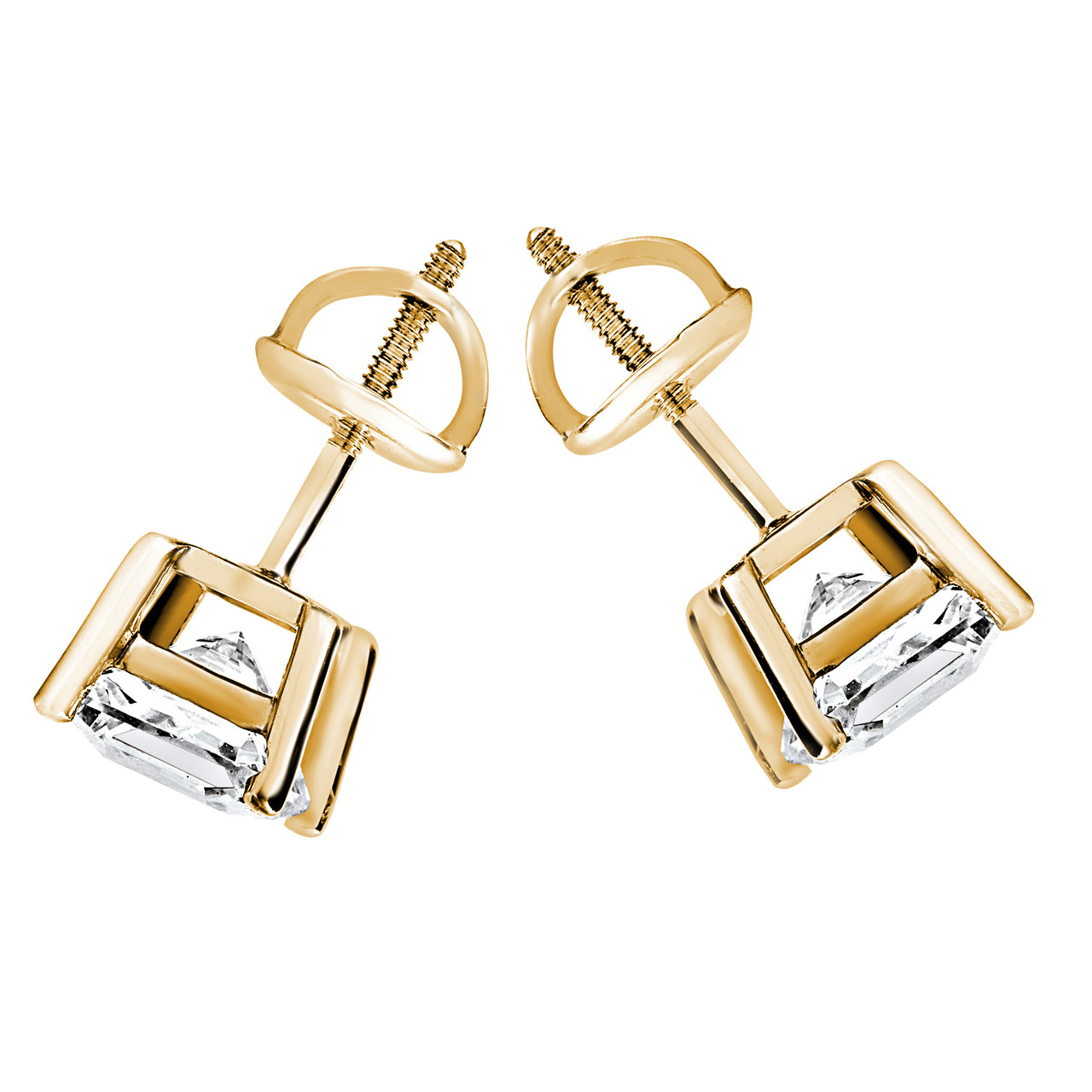 All eyes will be on you when you walk into the room wearing these princess cut earrings. With a stylish solitaire white diamond with sleek metal backing, youll be sure walk a little taller every time you wear these earrings.
