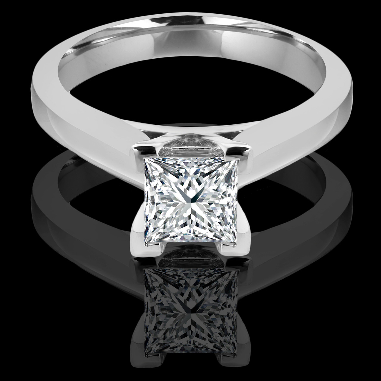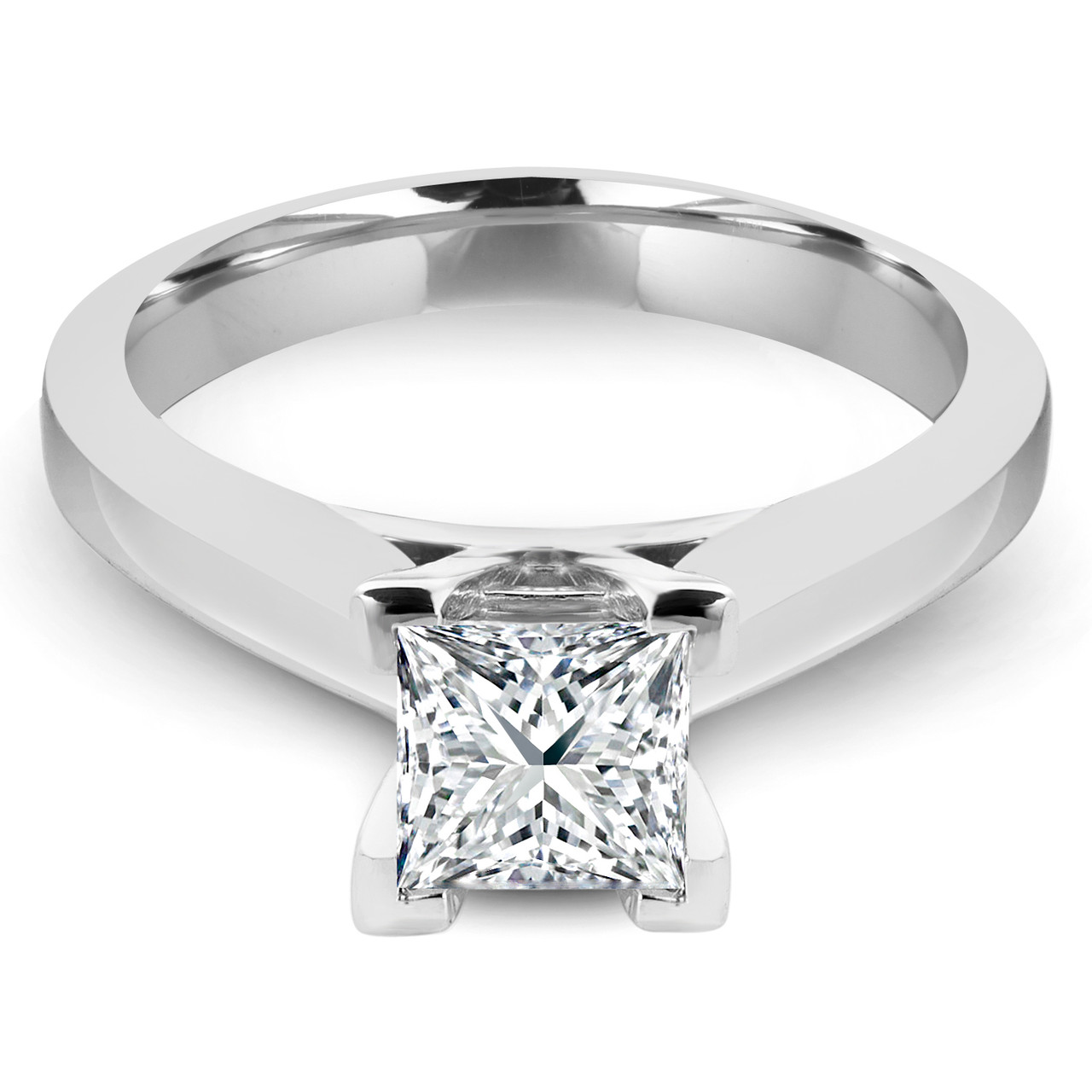 Princess Cut Diamond Solitaire V-Prong Engagement Ring in White Gold - #IMP-R-B-W