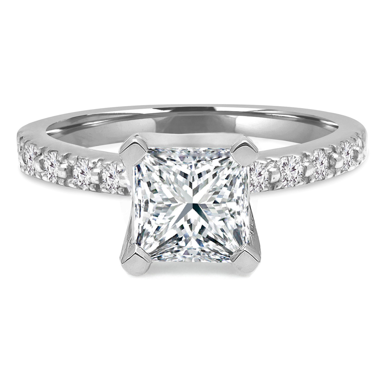 Your partner will fell spoiled when you slip one of these princess diamond engagement rings on their finger. Imagine the twinkle in their eye as they coo over every custom detail of this dazzling ring.