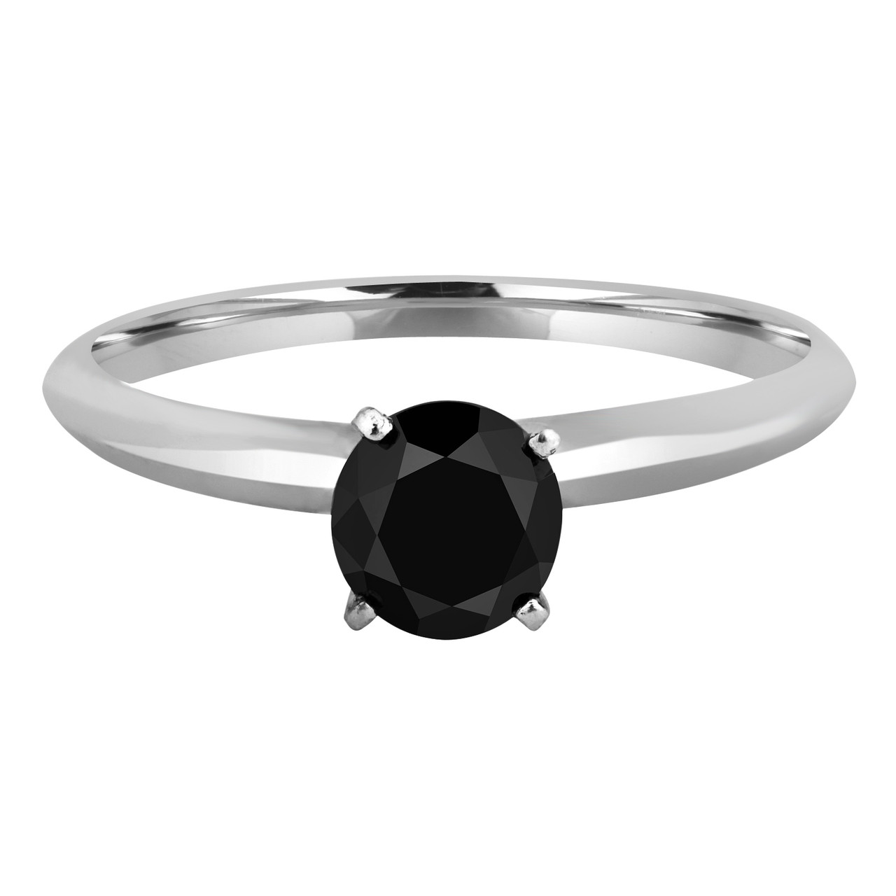 Round Cut Black Diamond Solitaire 4-Prong Engagement Ring in White Gold - #S4R-W-BLK
