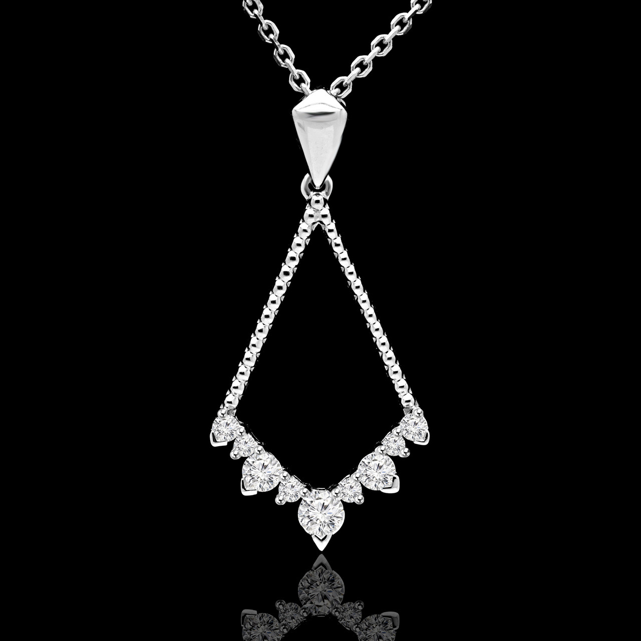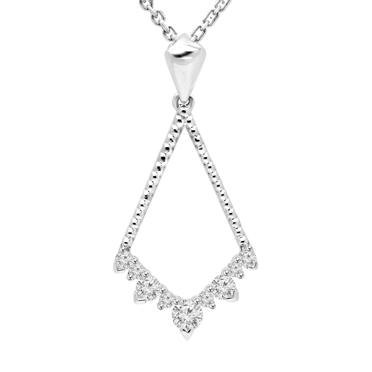 Round Cut Diamond Multi-Stone Shared-Prong Drop Pendant Necklace with Chain in White Gold - #URB-P-3059-W