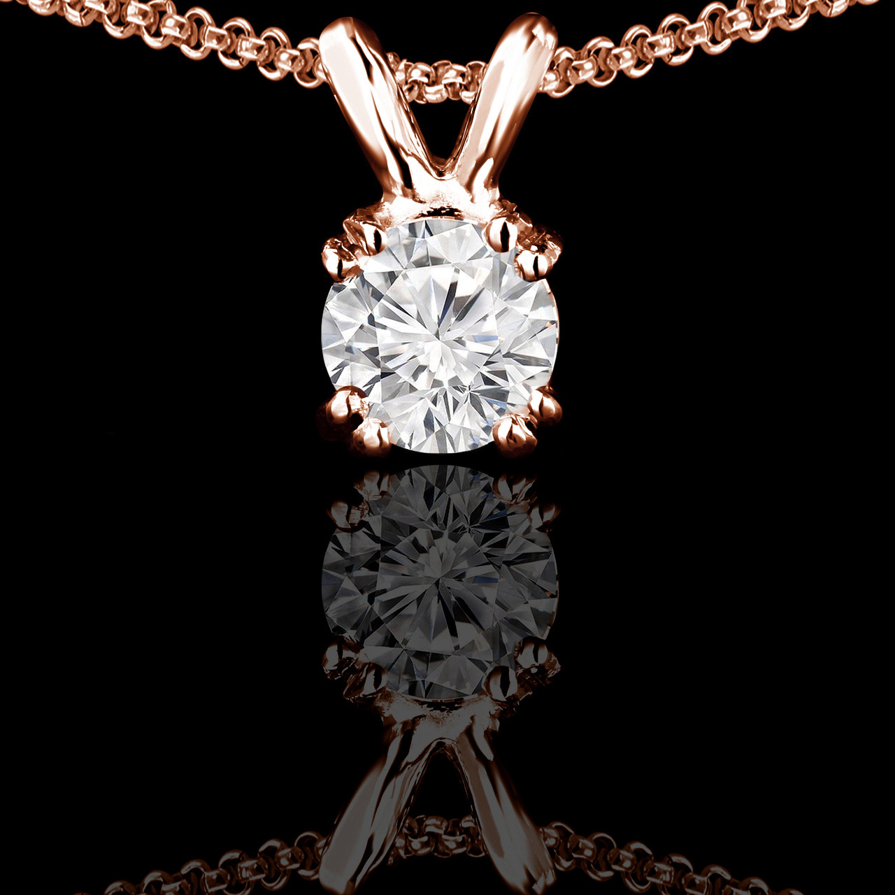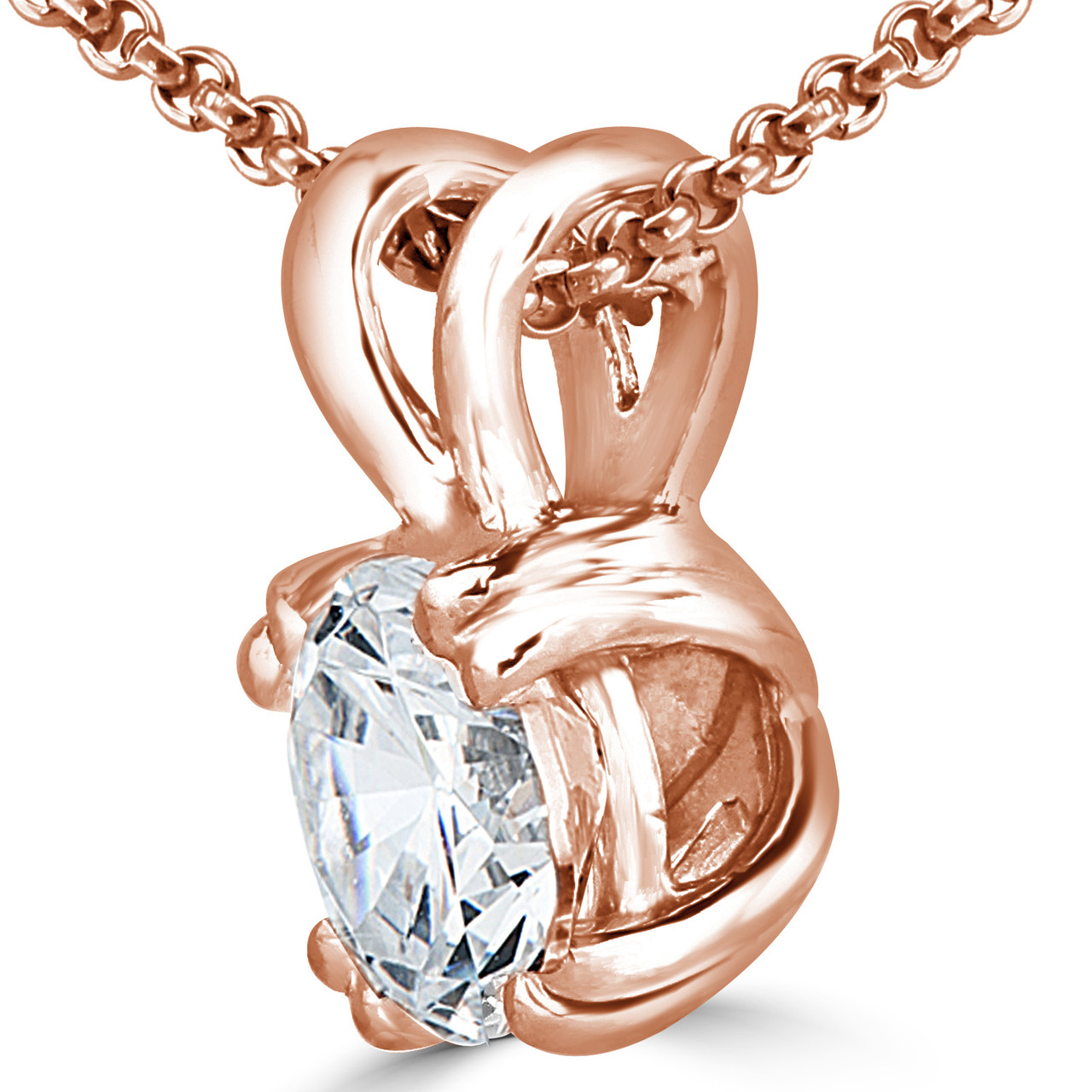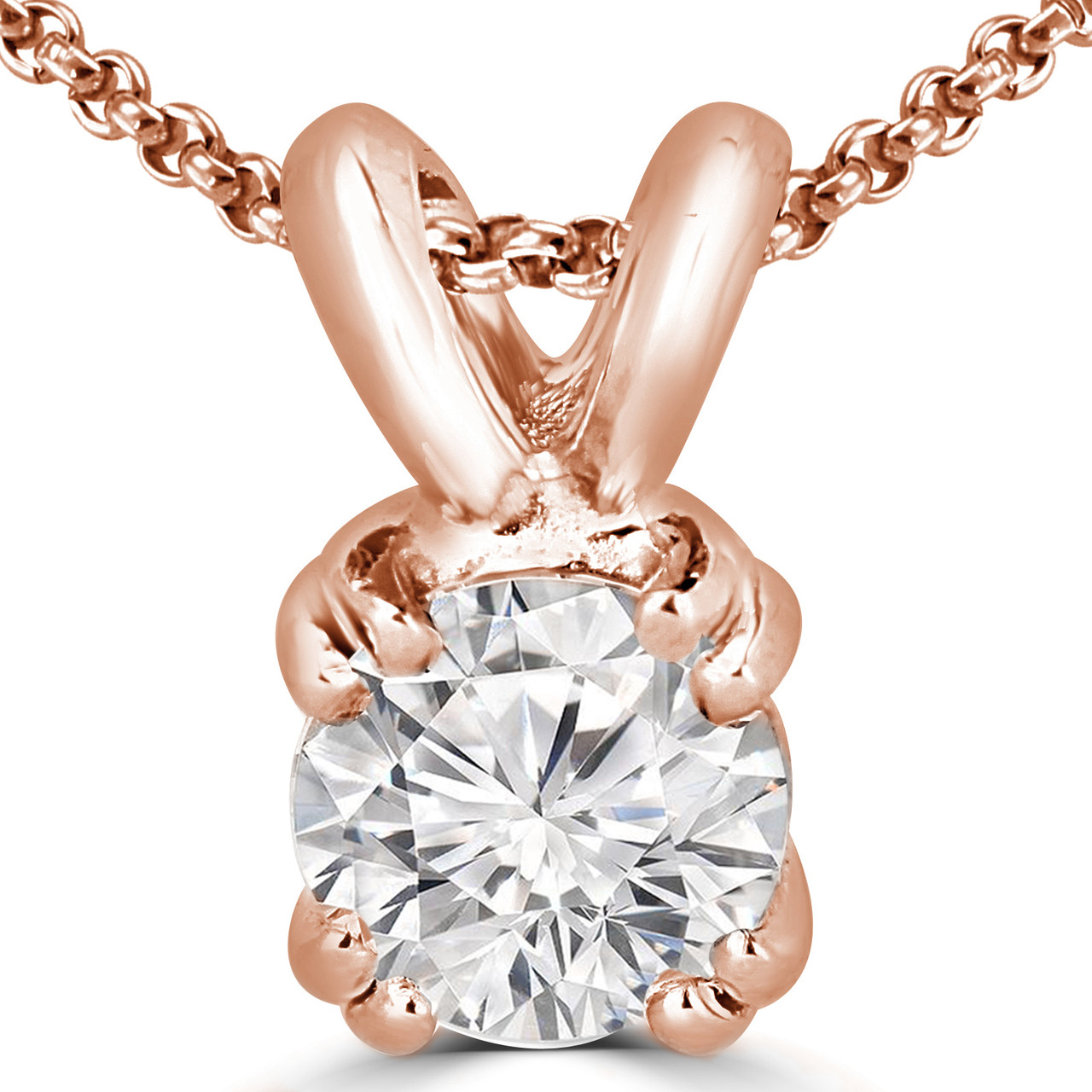 Round Cut Diamond Solitaire 4-Double Prong Pendant Necklace with Chain in Rose Gold - #R790R-R