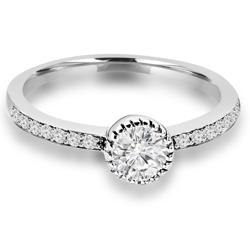 Show off your admiration for the one you love when you slip this prong setting engagement ring on their finger. Love at first sight only scratches the surface of how your partner will feel about the breath-taking diamond and sleek metal cast ring.