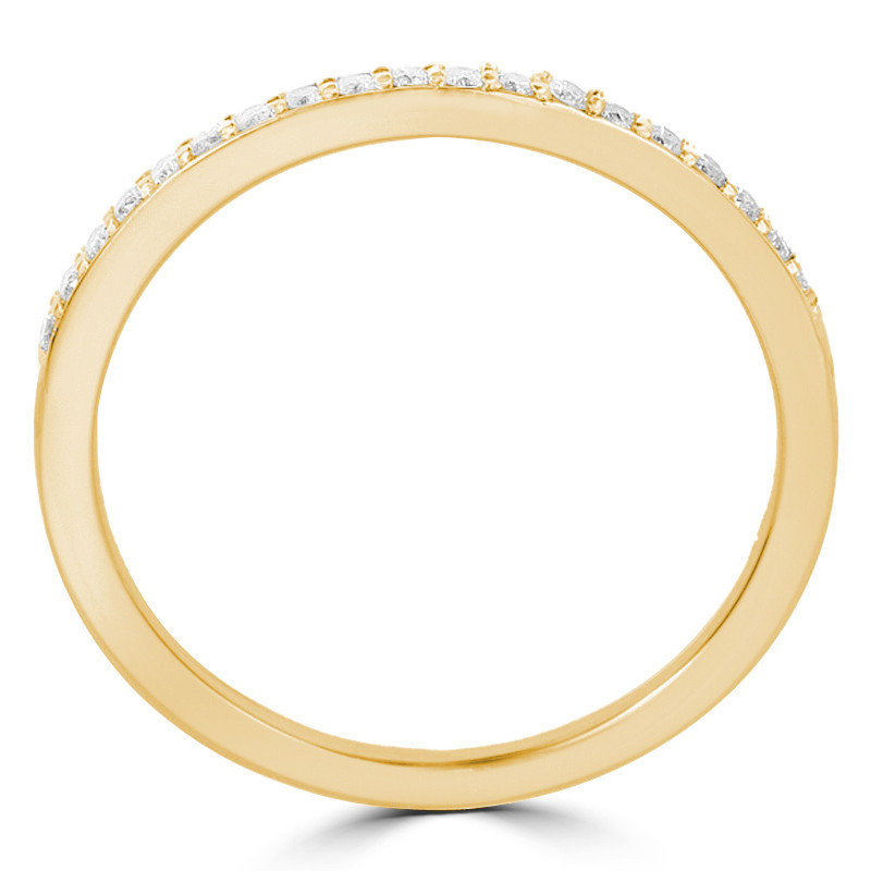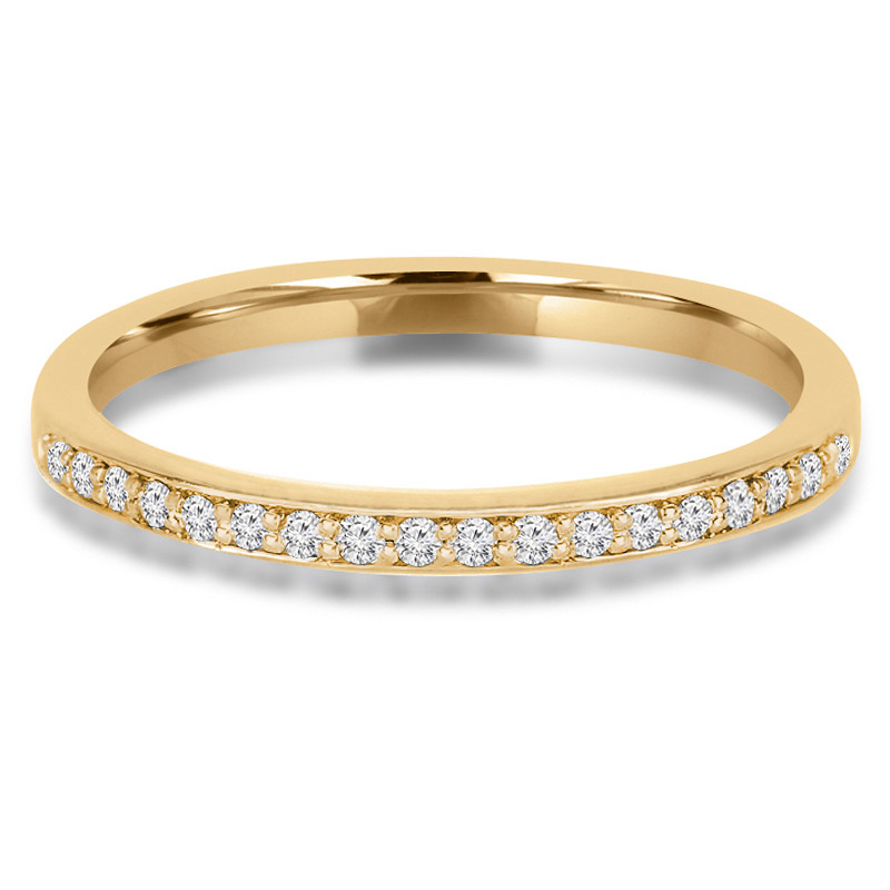 Your partner will walk with pride while this round cut diamond ring sparkles in the sunshine. With a semi-eternity band of diamonds, your special someone will adore the compliments aimed at the attention-grabbing style.