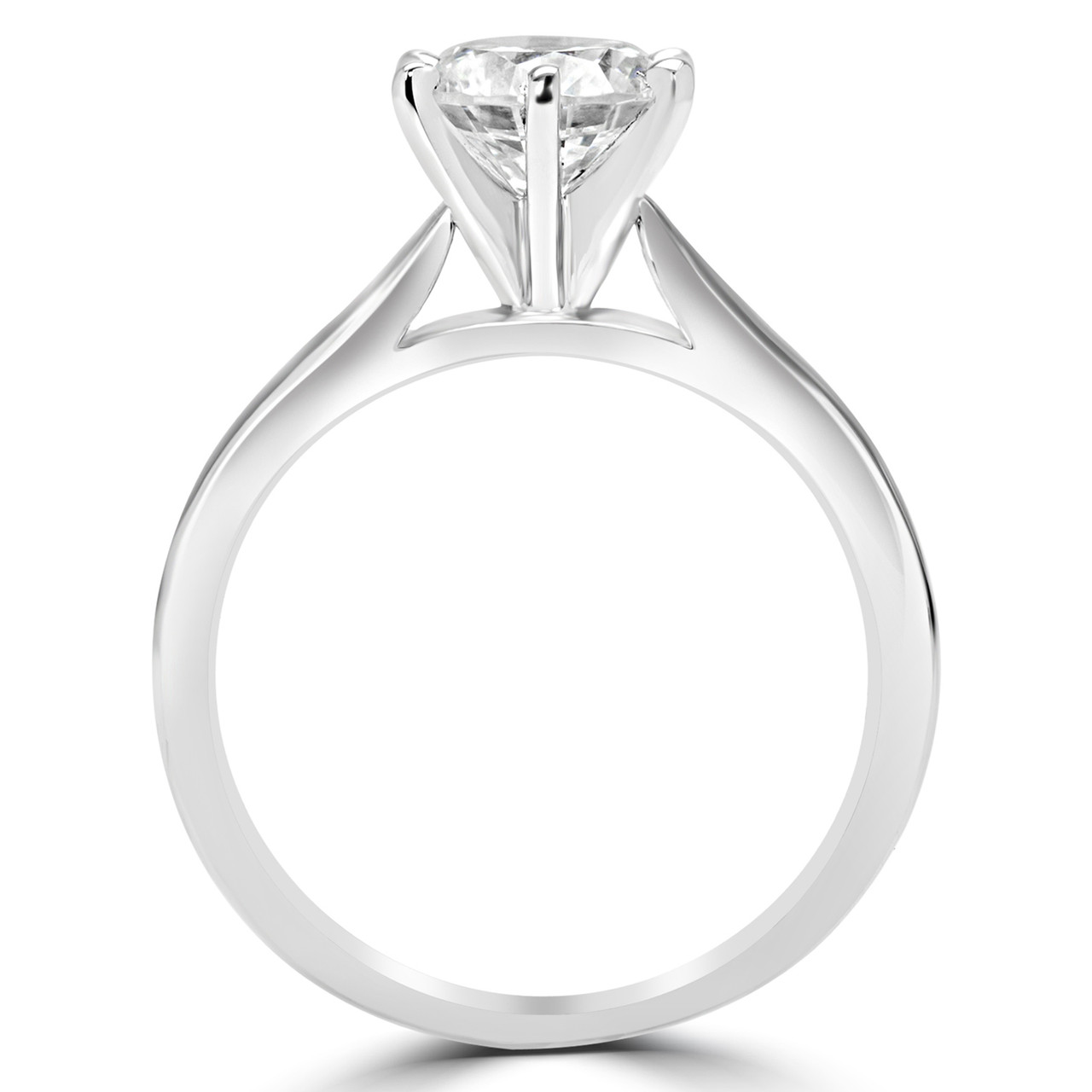 It wont matter if its raining cats and dogs or the sunniest of days, when you utter your precious proposal and present this round-cut diamond solitaire engagement ring. With added elegance thanks to a stunning cathedral setting and breath-taking diamonds, you may want to brace yourself for the hug of a lifetime and the yes youve been hoping for.