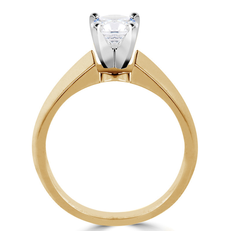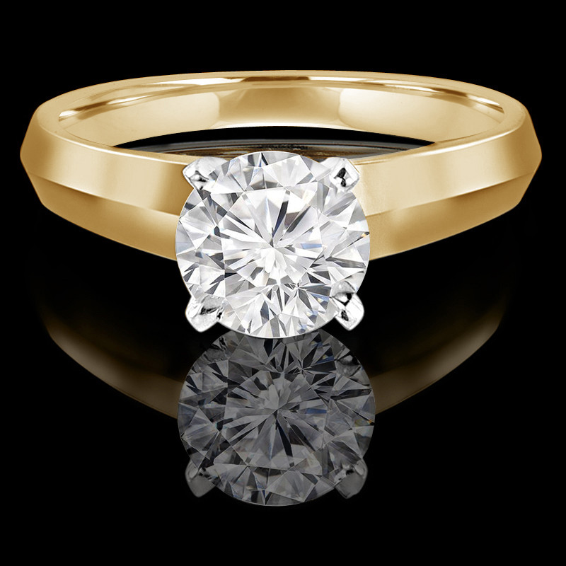 With a round cut engagement ring of this caliber you may want to prepare yourself for any possible swooning! This ring really knows how to step it up a notch with its defined band detailing and amazing four prong setting that makes the diamond look all the more mesmerizing!