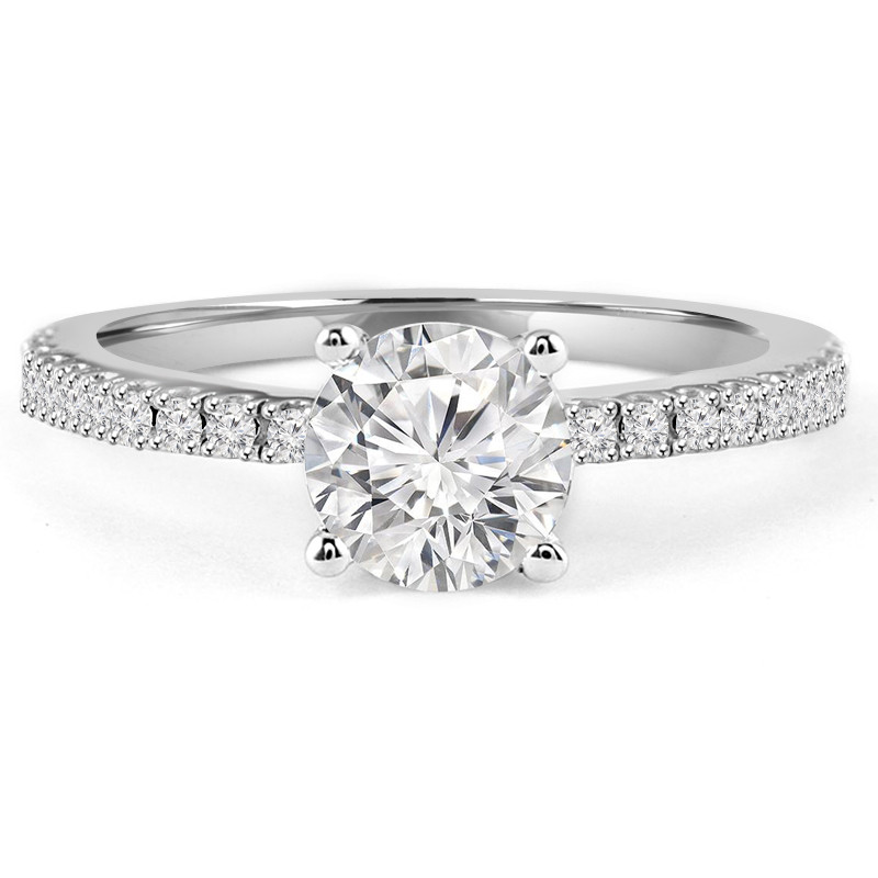 Round Cut Diamond Multi-Stone 4-Prong Engagement Ring with Round Diamond Scallop-Set Accents in White Gold - #HR6266-W