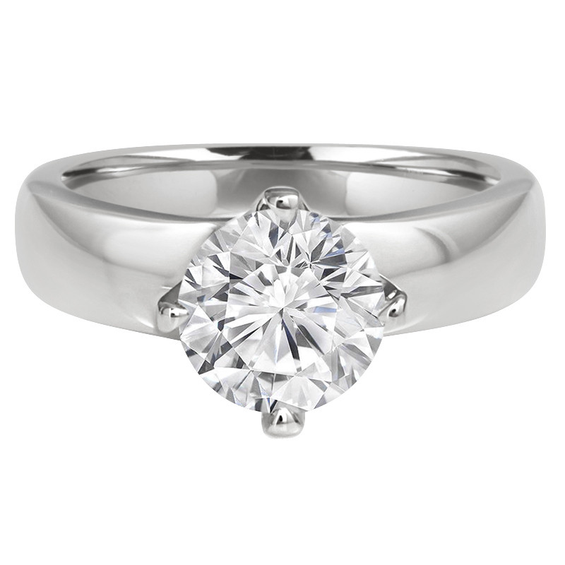 Theres something in the way this round solitaire engagement ring sparkles that will make your special someone weak-in-the-knees. Displaying a luxurious white diamond on a sleek metallic band, this token of your love will always be in fashion.
