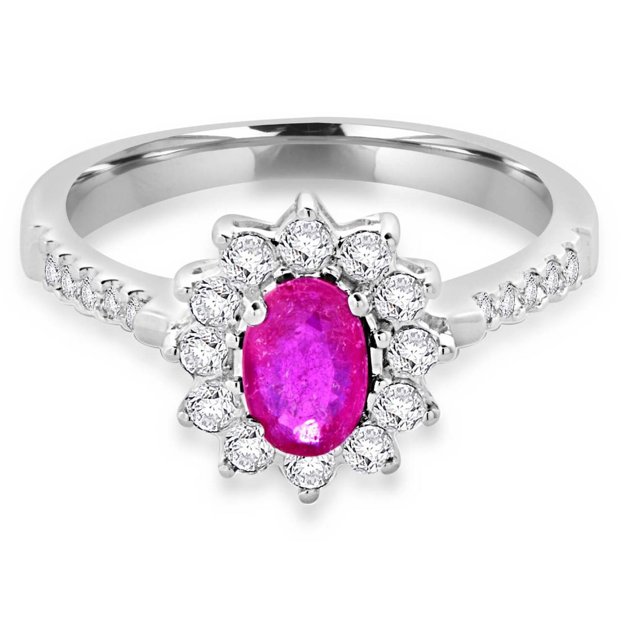 Oval Cut Red Ruby Gemstone Multi-Stone Halo Ring with Round Cut White Diamond Accents in White Gold - #CSFRQ8191
