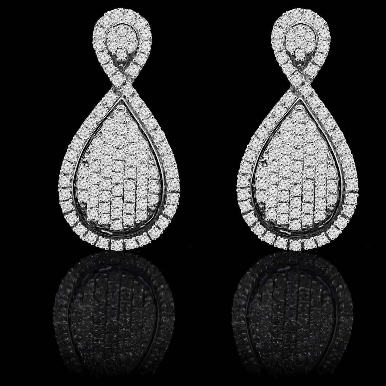 Round Cut Diamond Drop Vintage Multi-Stone Pave-Set Stud Earrings with Screwbacks in White Gold - #EAOC7360G