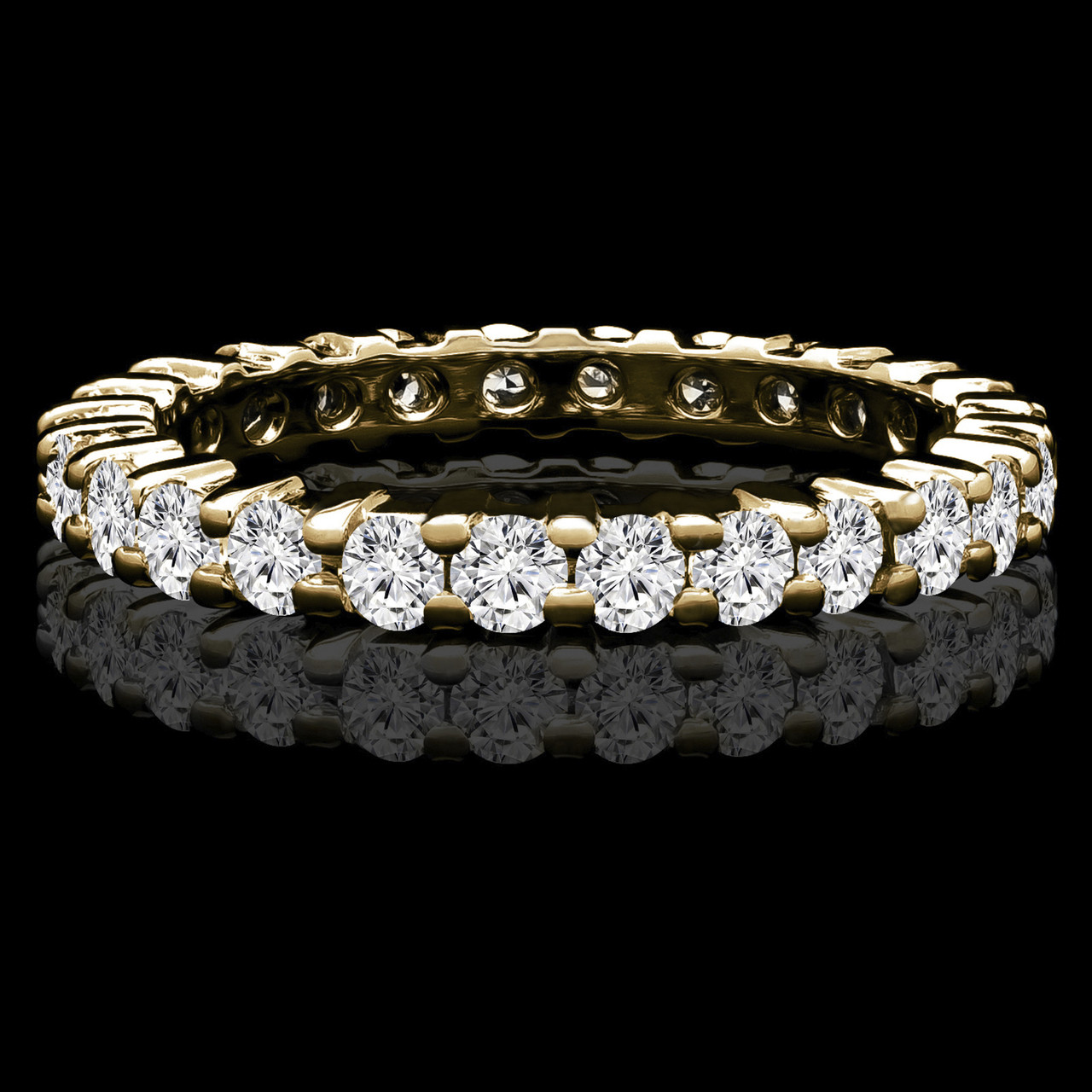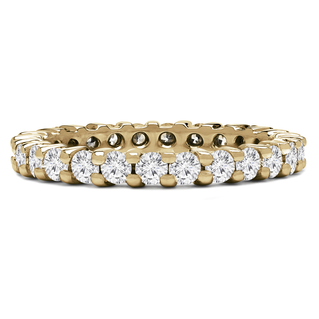 Your wedding plans will go smoothly with this shared prong eternity band stealing all of the attention. The jaw-dropping diamonds adds an extra special touch to the big moment when the two of you woo your guests with your romantic vows!