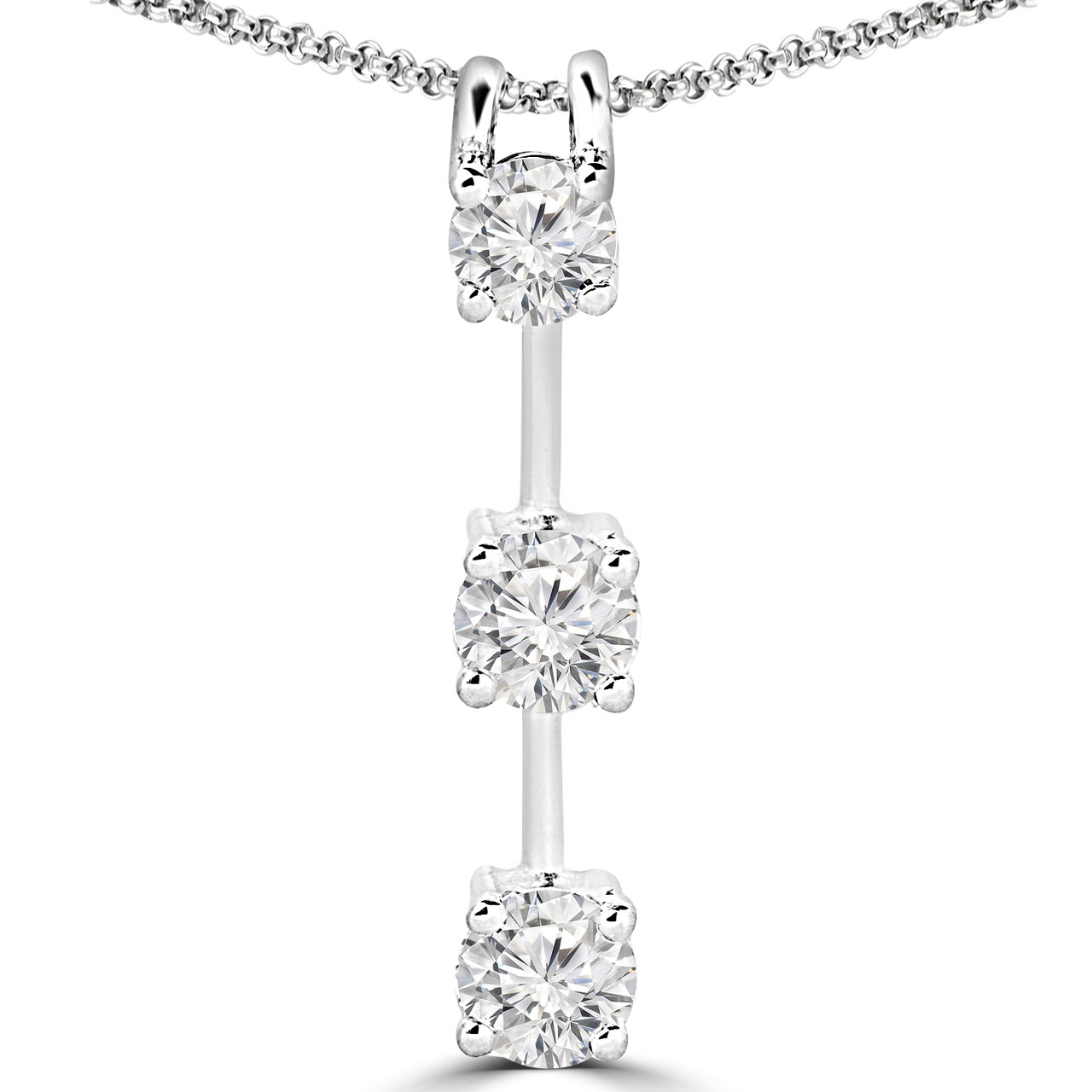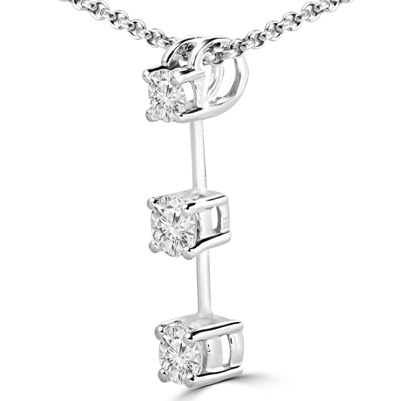 Round Cut Diamond Three-Stone 4-Prong Pendant Necklace with Chain in White Gold - #R753L-W