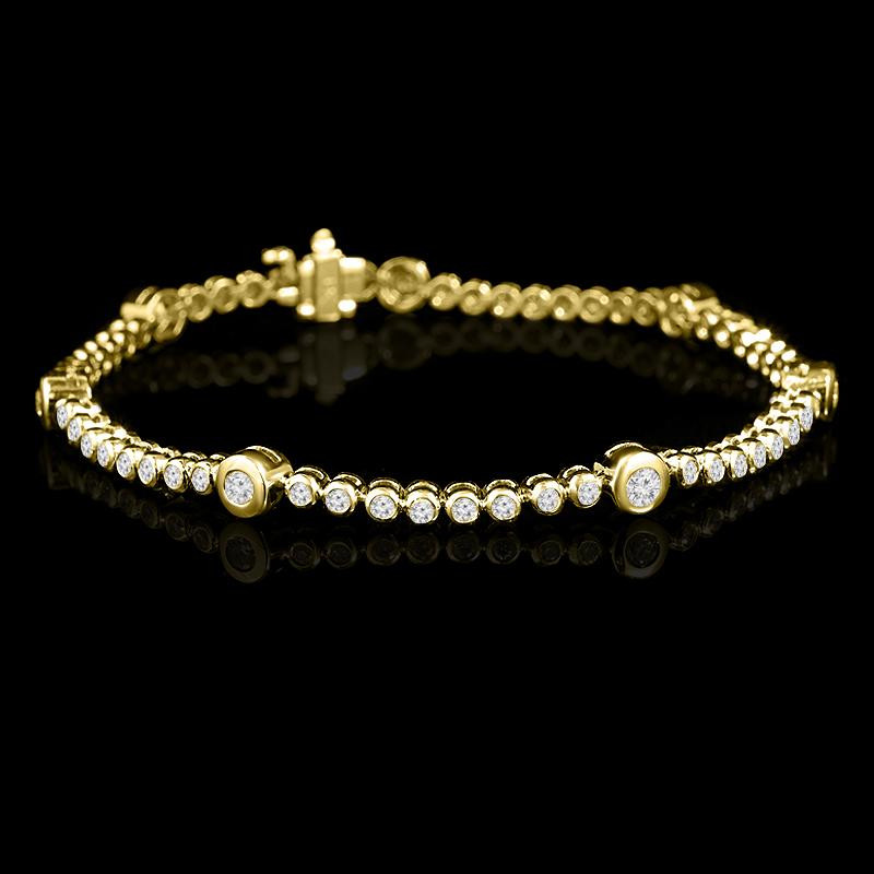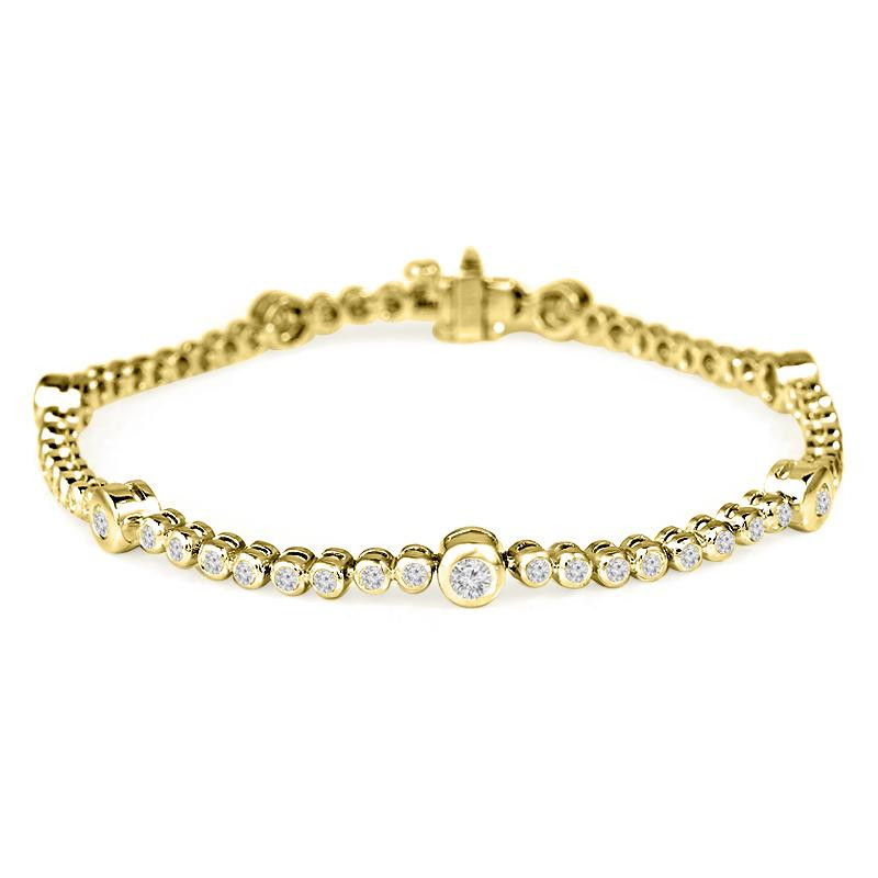 Round Cut Diamond Bezel-Set Tennis Bracelet in Yellow Gold - #B2118-Y