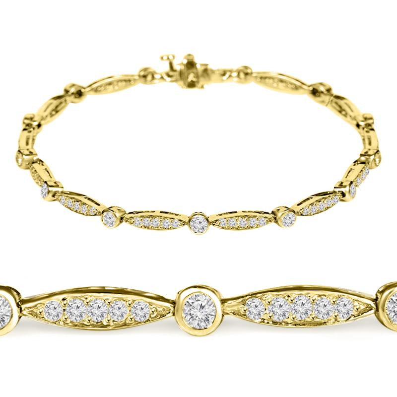 Round Cut Diamond Shared-Prong Fashion Tennis Bracelet in Yellow Gold - #B1741-Y